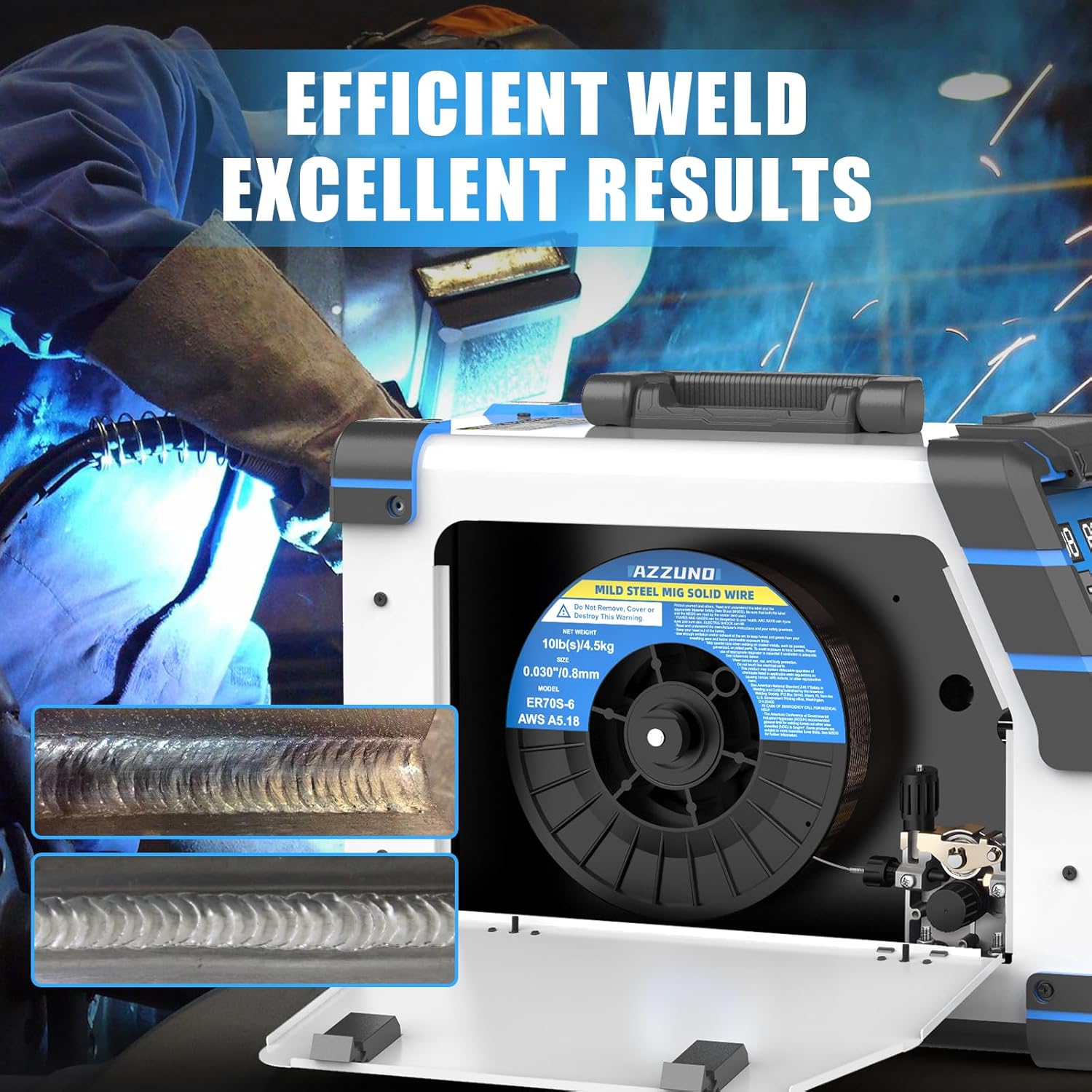 AZZUNO 200A MIG Welder & .030" 10lbs Solid Mig Welding Wire, 110V/220V Dual Voltage Welder Machine, 4 in 1 Gasless MIG/Gas MIG/Lift TIG/Stick Welding Machine