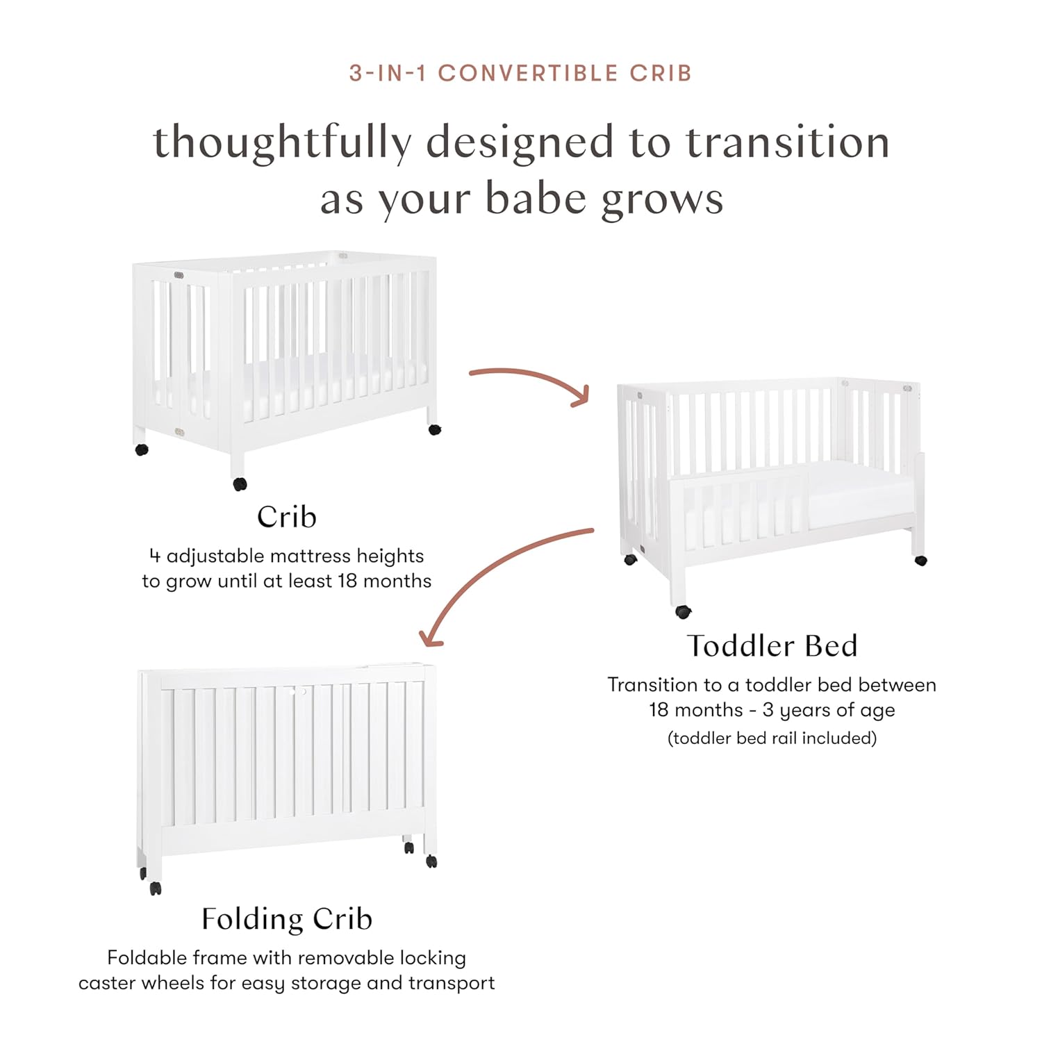 | Included Components | Folding Crib, Toddler Bed Conversion Kit |