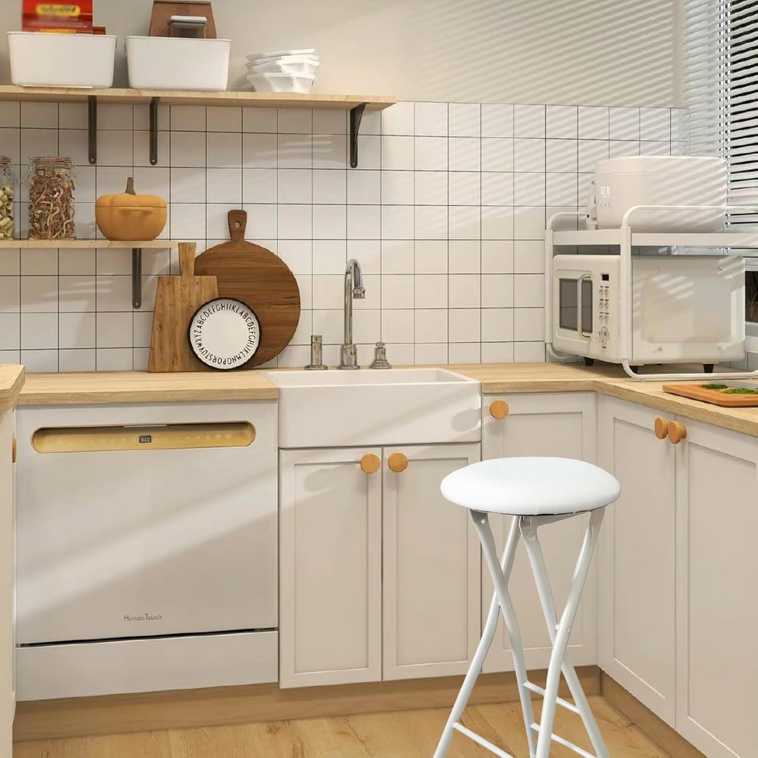 The multi-purpose stool is ideal for extra seating during indoor or outdoor events, special occasions, holiday gatherings, and more, can be folded stacked when not in uhe folding designed with non-slip foot covers on each leg to ensure no damage hardwood floors snags carpetsThe contemporary design adds a touch any kitchen .Not only it attractive its clear lines minimalist design, it's also sturdy comfortable.Expanded size (width×depth×height): 36×36×70cm/36x38x80cmHeight from seat ground: 70cm/28inch, 80cm/32inchHeight after folding: 95cm/106cmFolding thickness: 8cm/3.1inchMaterial: metal, PU sponge padColor: black, whiteLoad capacity: 136kg/300lbsPacking list: Folding x1Notice:Manual measurement, please allow slight errors size.Colors may vary slightly due different screen displays