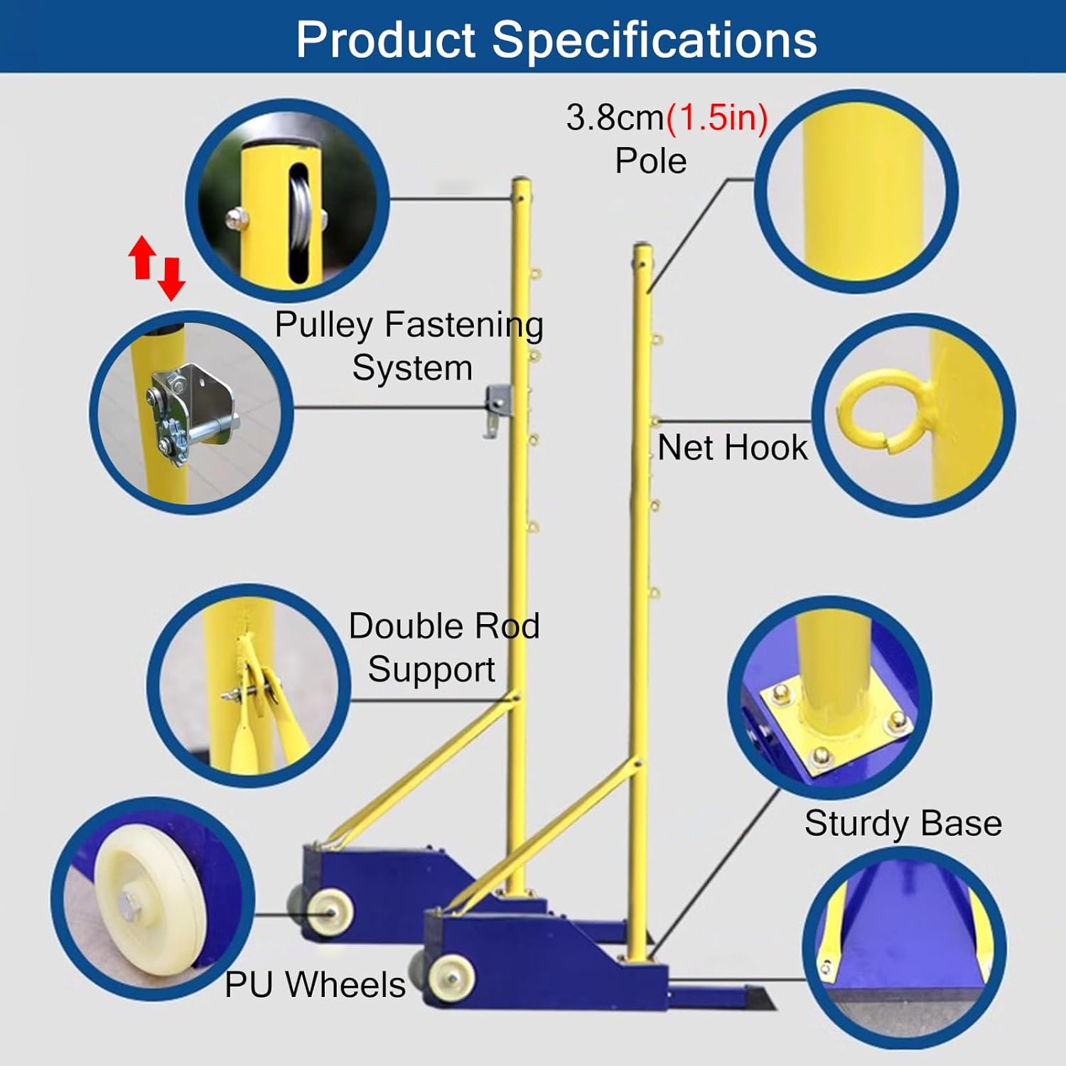 Portable tennis net, endless sports opportunities! Play tennis, change volleyball, football tennis on the beach, driveway, backyard and any flat area! Let the children go out for activities! The portable network is very suitable for leisure games and sports training for adults and children. Specification Material: Metal Iron Stand and Nylon Net Height: 155cm(5ft) Net Length: 6.1m/20ft Features Badminton net rack base has a roller, which is very convenient to move. For easy portability, the base is an empty box base design, and you can add weights freely, which is very convenient. In order to maintain the stability of the ball column, the badminton net rack adopts a large size base, and the ball column is more stable after you add the weight. Tips: Manual measurement,there will be 1-3cm error,please understand. If a slight odor is normal,it will disappear within two to three days. Due to light and personal differences in color understanding, there will be small color difference,in kind prevail.