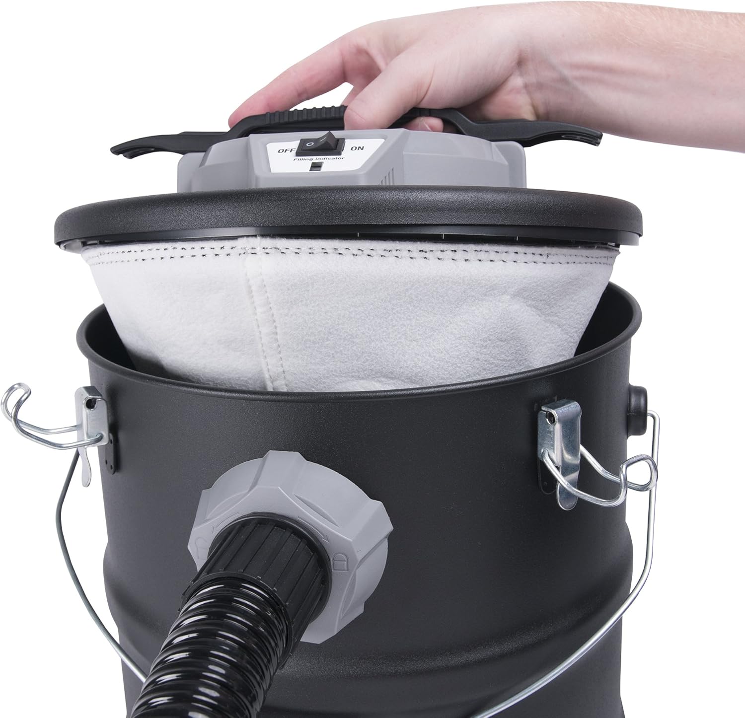 BA-003 Features: -Dual filters including a hepa filter and fireproof diaphragm filter that cleans itself by turning on and off. -Hepa filter is protected by metal spark arrest screen. -High powered ash vacuum designed for barbecues, fireplaces, fire pits, and smokers. -Side inlet with cyclonic action to reduce clogging. -The ashes should be very cool before using the vacuum. Color: -Black. Material: -Metal. Dimensions: Overall Height - Top to Bottom: -17". Overall Width - Side to Side: -13.5". Overall Depth - Front to Back: -13.5". Overall Product Weight: -11 lbs.