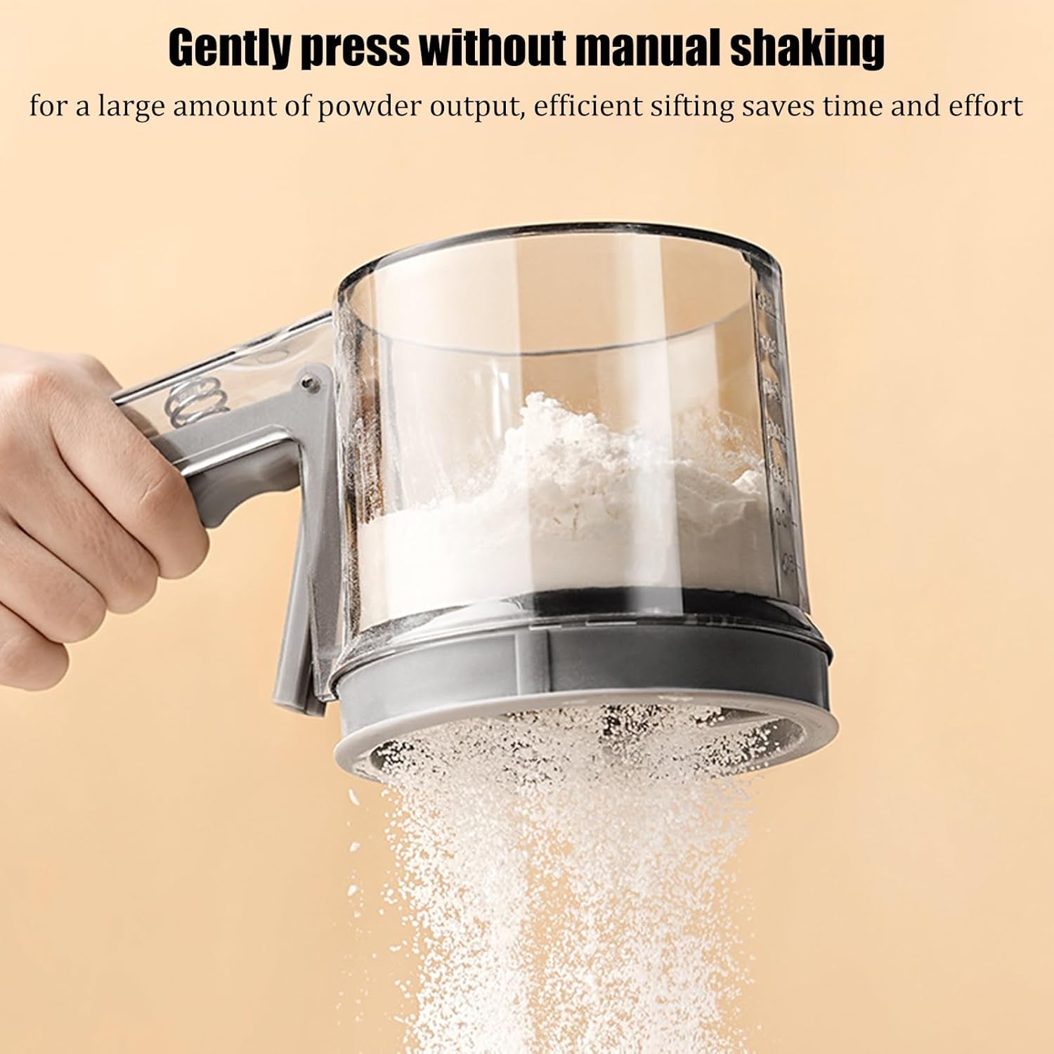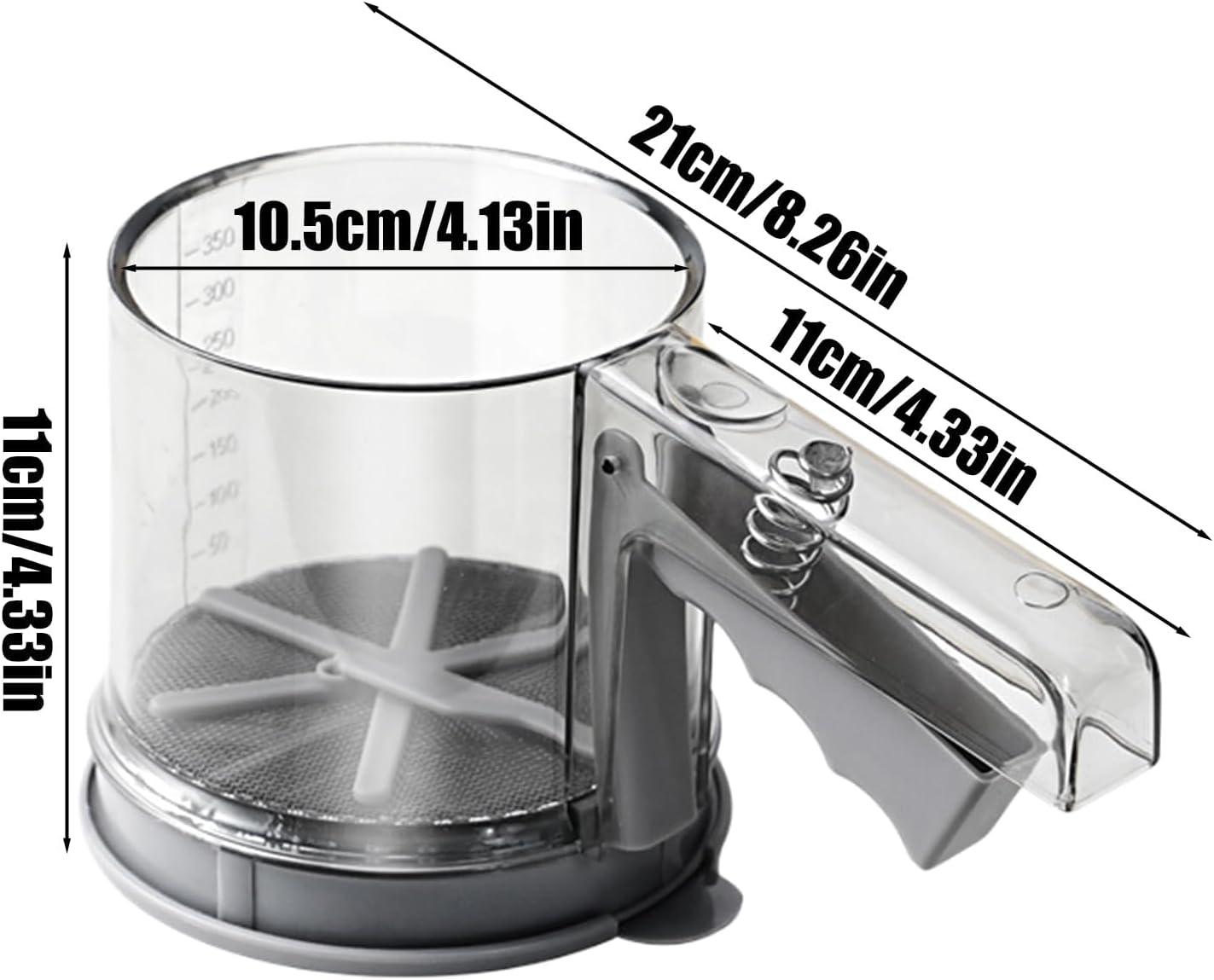 This flour sifter is an indispensable utensil for both home cooks and professional chefs in restaurants. Featuring a semi-automatic mechanism, it simplifies the process of sifting flour and sugar. Built from excellent stainless steel, the sieve durability without compromising on performance. Ideal for dusting surfaces or creatingcakes, it's a good choice for all your kitchen needs. Specifications: Name: Flour Sifter Product Size: about 21x11cm/8.27x4.33 inches Material: Polystyrene+PP+304 stainless steel Weight: 510g Packing List: Flour Sifter *1 Note: Due to the different light and screen settings, the color of the product may be slightly different from the picture. Due to the different manual measurement, please allow 1-2cm size difference.