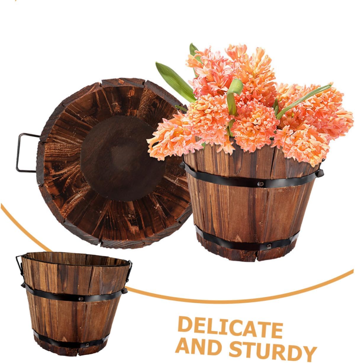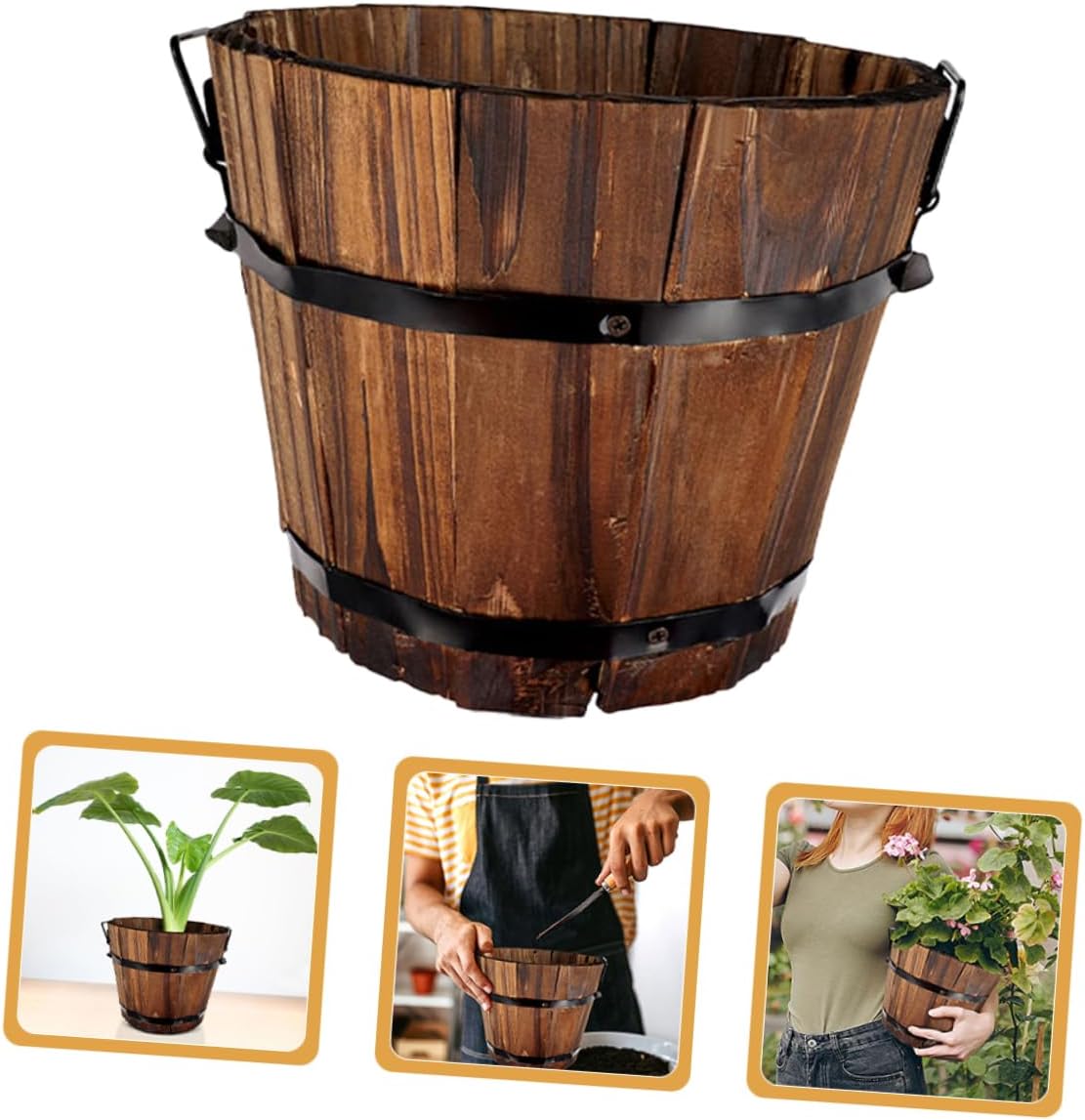 Package List 5 x Wooden Planter Characteristics -Color:As Shown vegetable plant container -Size:11.80X10.00X9.00cm/4.64X3.93X3 patio pot. -Material:Carbonized wood potato planting pot -With vintage design, unique shape, and craftsmanship, a wonderful decoration for garden wooden boxes. -The wood planter is equipped with two handles with thoughtful design, which is easy to lift and move vegetable planting container. -The retro wooden barrel made of stable and safe material will not easy to fade and crack. -Suitable for many occasions, such as garden, office, windowsill, balcony, hotel and more garden planters. -The planter looks very retro and chic, retro and beautiful, which can be a your friends, they would love it potato planter pot.Goods Informationpotato planting holder Are you looking for a practical pot? This planter is manufactured with material for use.vegetable plant container Retro finish endows it with much more beauty.garden supply The planter is suitable for balcony, vegetable garden, green project, office, home furnishings, home gardening and so on