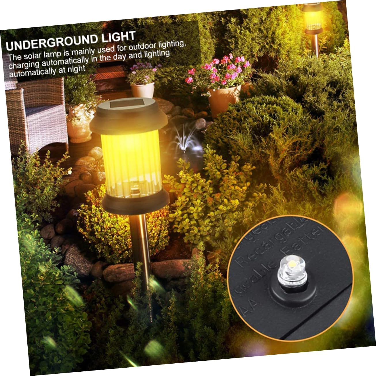 Package List 6 Features - Voltage: 1.2V Garden Light. - Color: Assorted Color Solar Lamp. - Working Time: About 8h Solar Light. - Size: About 42X10X10cm/16.51X3.93X3.93inch Outside Light. - Material: Plastic, Solar Panel, Battery Underground Light - Protection Grade: IP65 Night Light. - Creative and unique look make it more attractive, and it is in use Ground Plug Lamp. - Suitable for gardens, lawns, walkways, courtyards, yards, parks, etc. decor use Lawn Lamp. - High solar power converting ability. with low power consumption Road Light. - , it is and environmental protection Landscape Lights. - Adoption of , this product is , handy and long-time use Landscape Light.Goods InformationRoad Light for garden lighting, decorating your lawn, patio, yard and all other outdoor pursuits that would from beautiful lighting to create a wonderful and relaxed atmosphere.Ground Plug Lamp Made by material, and have more longer service life