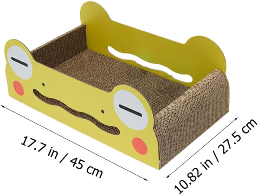 Package List 1 x cat scratching board Characteristics -Color: Assorted Color. -Size: About 45.00X27.50X20.50cm/17.68X10.81X8.06inch. -Material: Corrugated paper. -Product Info:Cat scratching the cat's nest - Good texture, craftsmanship, not easy to damage, your cat will like to play cat scratcher house. - The power of cats and kittens are spent on on the board, without scratching other furniture cat cartoon scratching pad. - Avoid your cat from harming your precious furniture. A practical and great-value cat , a good choice for your scratcher pad house. - It’s environmental-friendly and cat-friendly, totally natural and has not been treated with any harsh oils, chemicals cat scratching cardboard. - Easy to attract the cat's attention and keep your cat entertaining for several hours corrugated cat scratcher.Goods Informationcat scratching bed Your cats will love the natural and safe scratcher.frog cat scratcher This cat scratching mat pad covers you quickly and easily to protect your sofa and furniture, Naturally, our cat scratch board is indeed and environmentally friendly