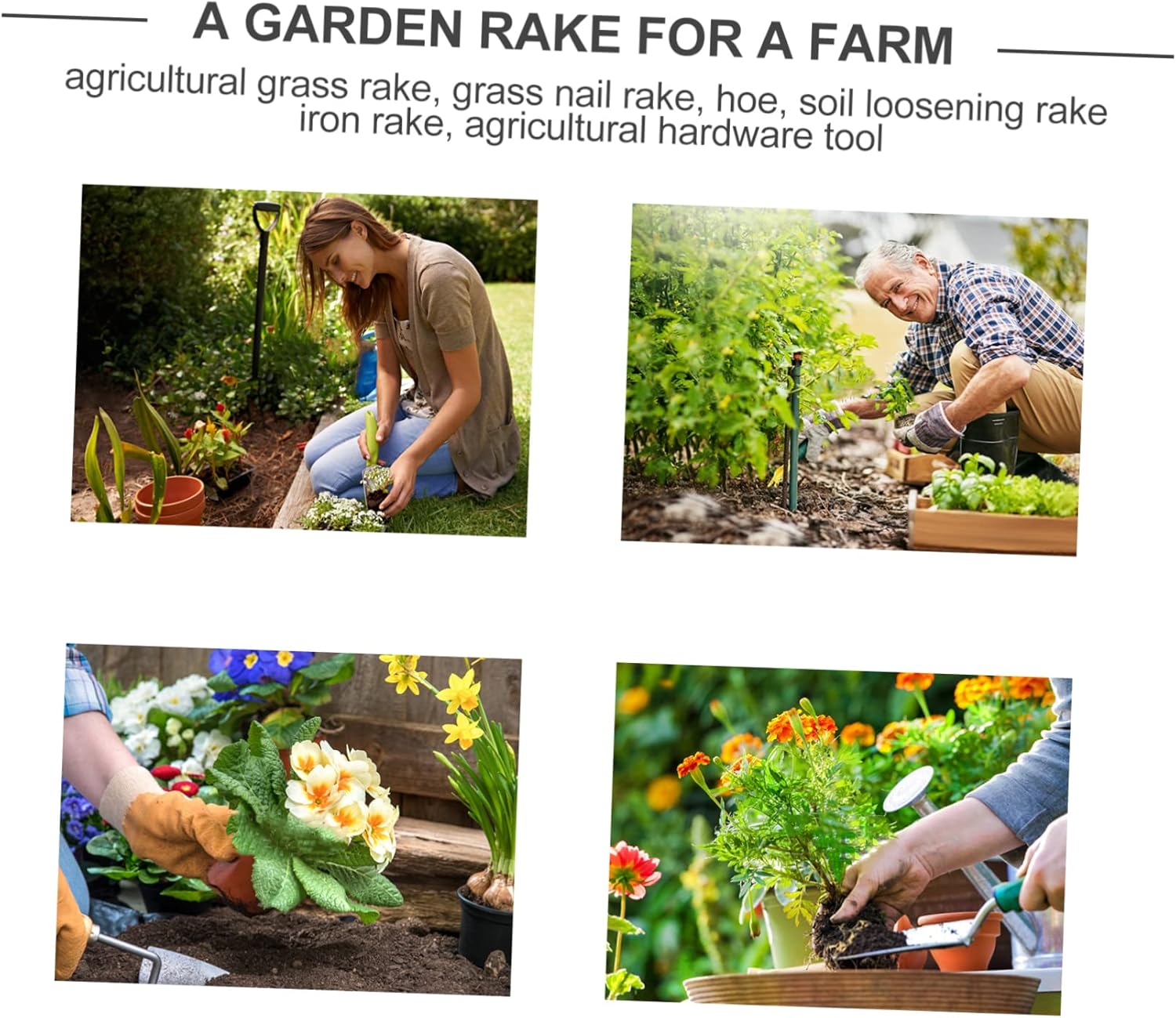 Package List 1 x garden rake Characteristics - Color: Loosen Rake. - Material: Iron Grass Nail Rake. - It could loosen the soil up, mix soil with fertilizers better, gather leaves, and so on Sturdy Rake. - This garden rake with tines, which make it could pierce into any kind of soil and to serve to dig, loosen soil efficiently Reliable Grass Rake. - Well selected and sturdy material, it is reliable and not easy to break Iron Rake. - The rake is designed for gardening, wear resistant for long-term use Fallen Leaf Rake. - The teeth of the rake is sturdy enough, which could be helpful to work more efficiently Gardening Agriculture Rake.Goods DescriptionGrass Nail Rake With this tool, you can With this tool, you can do your gardening work better.Grass Rake Resists breakage while being easy-to-handle and conveniently lightweight.Agriculture Nail Rake Made from and durable material, sturdy and strong enough