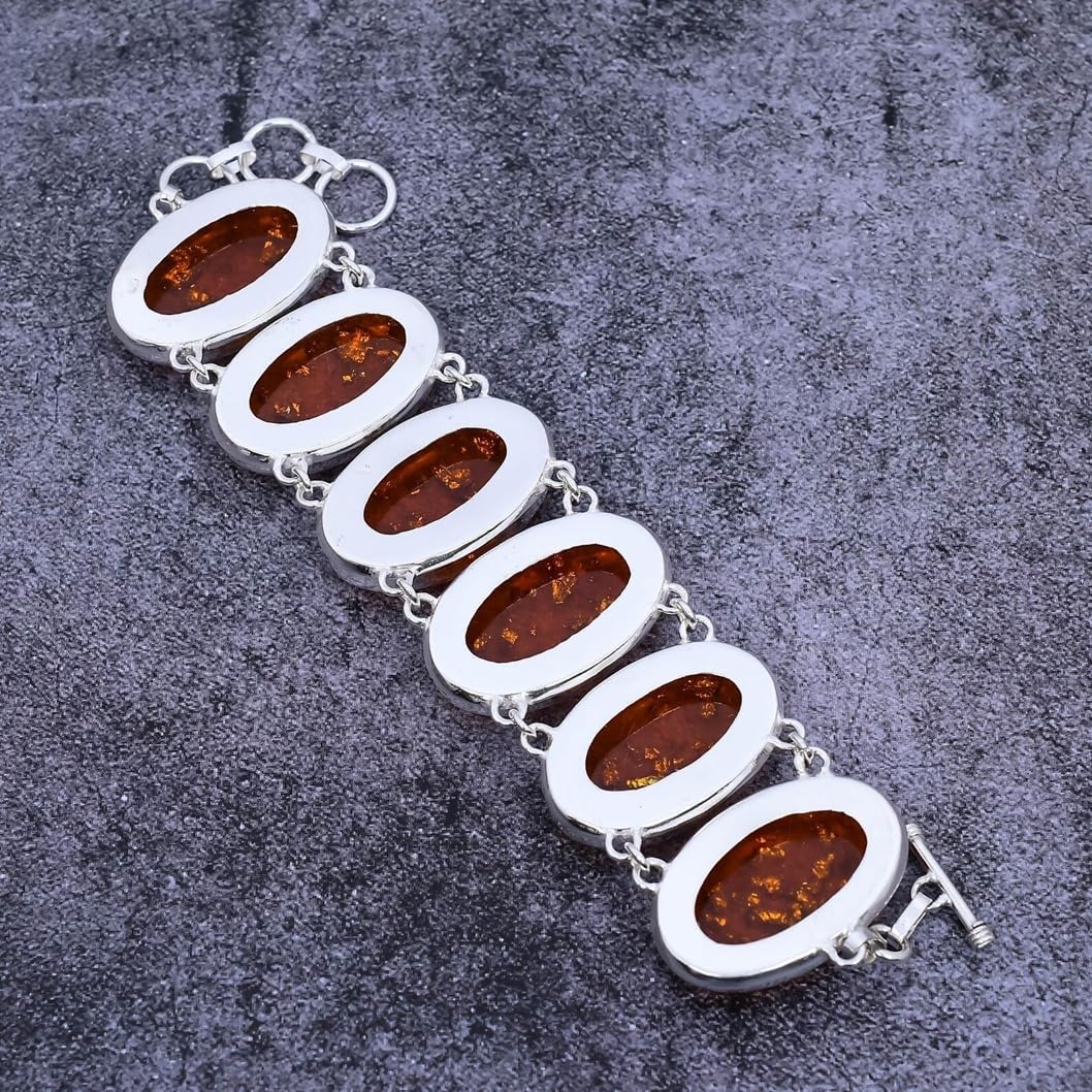 Elevate your accessory game with this stunning Baltic Amber Bracelet, expertly handcrafted from 925 sterling silver and natural Baltic amber gemstones. Each glowing amber cabochon is bezel-set in an intricately designed silver link, forming a bracelet that radiates warmth, history, and earthy elegance. Known as a protective and healing stone, Baltic amber is fossilized tree resin cherished for its golden hues and natural inclusions. This bracelet blends nature’s beauty with skilled craftsmanship, perfect for women who love vintage, spiritual, or boho styles. Finished with an adjustable chain and secure lobster clasp, it's both stylish and practical — a meaningful gift or a treasured everyday accessory.