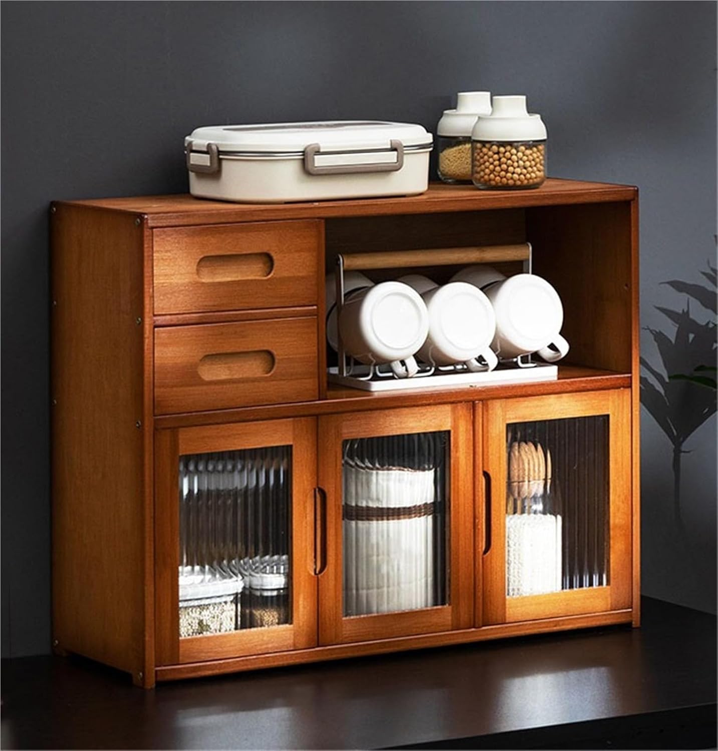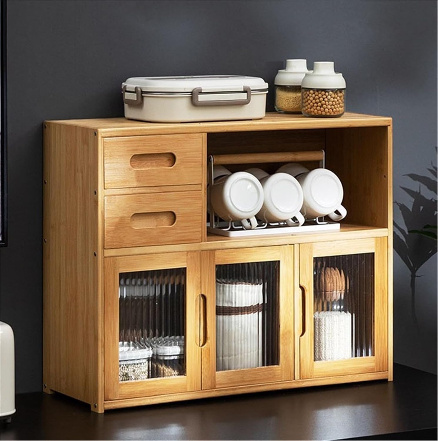 Streamline your kitchen storage with our Dustproof Bamboo Desktop Storage Cabinet, a stylish and functional solution designed to enhance both organization and accessibility. Made from eco-friendly bamboo, this freestanding pantry sideboard features transparent acrylic double doors that not only keep your dishes, snacks, and decor free from dust but also allow for easy visibility of contents. Ideal for kitchens, dining rooms, or pantries, this cabinet’s compact design fits perfectly on countertops or stands alone as a versatile unit. Its neutral bamboo finish and modern aesthetic blend seamlessly with farmhouse, bohemian, or contemporary decor, adding a touch of natural elegance to your home. The Counter Top Storage Cabinet with Drawer showcases a modern and minimalist style that suits various interior designs. With its thoughtful construction and easy installation method, this cabinet offers both practicality and sophistication. Package List: 1 x Storage Cabinet Please note: 1. Product dimensions are manually measured and may have a slight error of 1-3CM. 2. Color variations may occur due to different display settings. Please refer to the actual product for accuracy. 3. For any inquiries or concerns, please do not hesitate to reach out; we are here to assist you promptly.