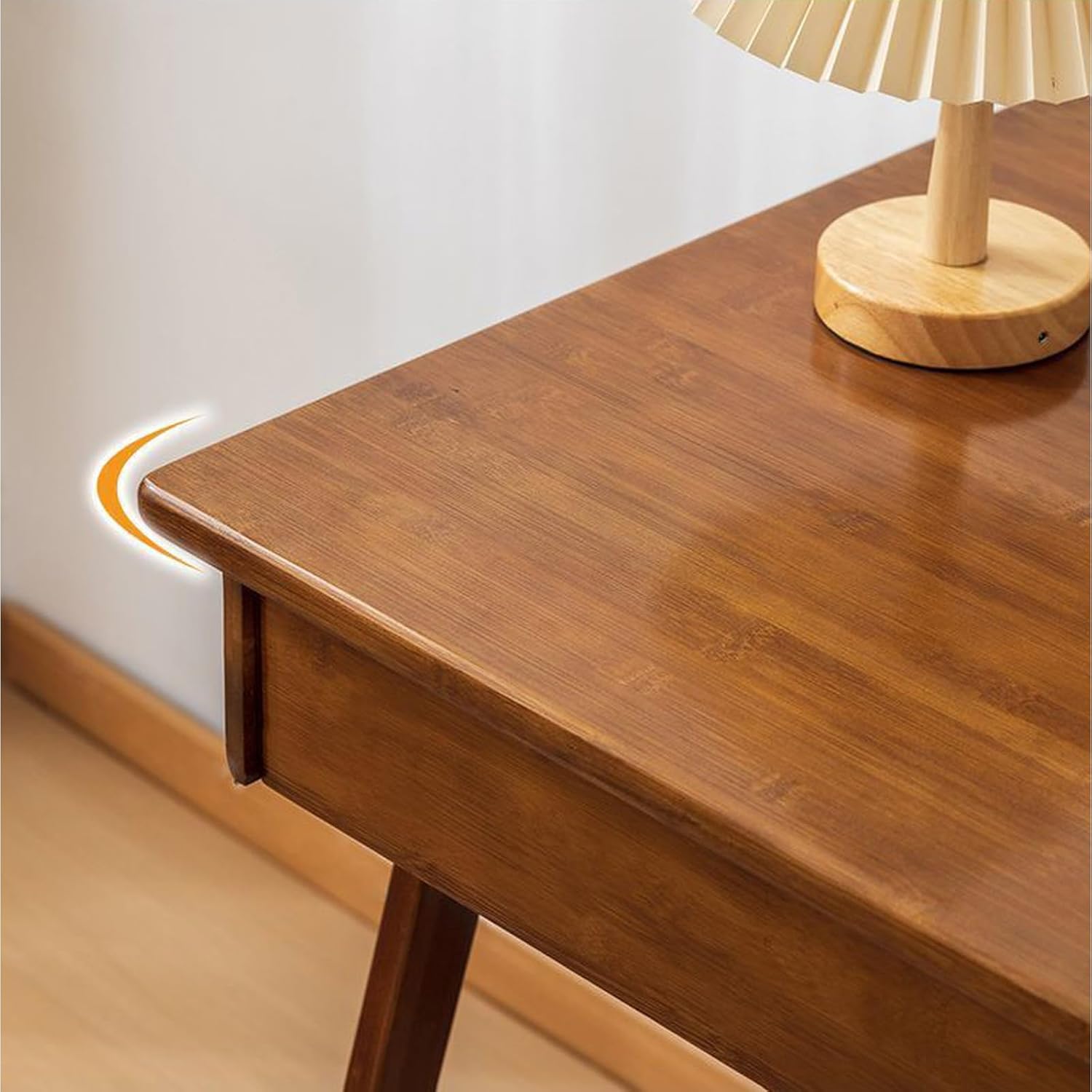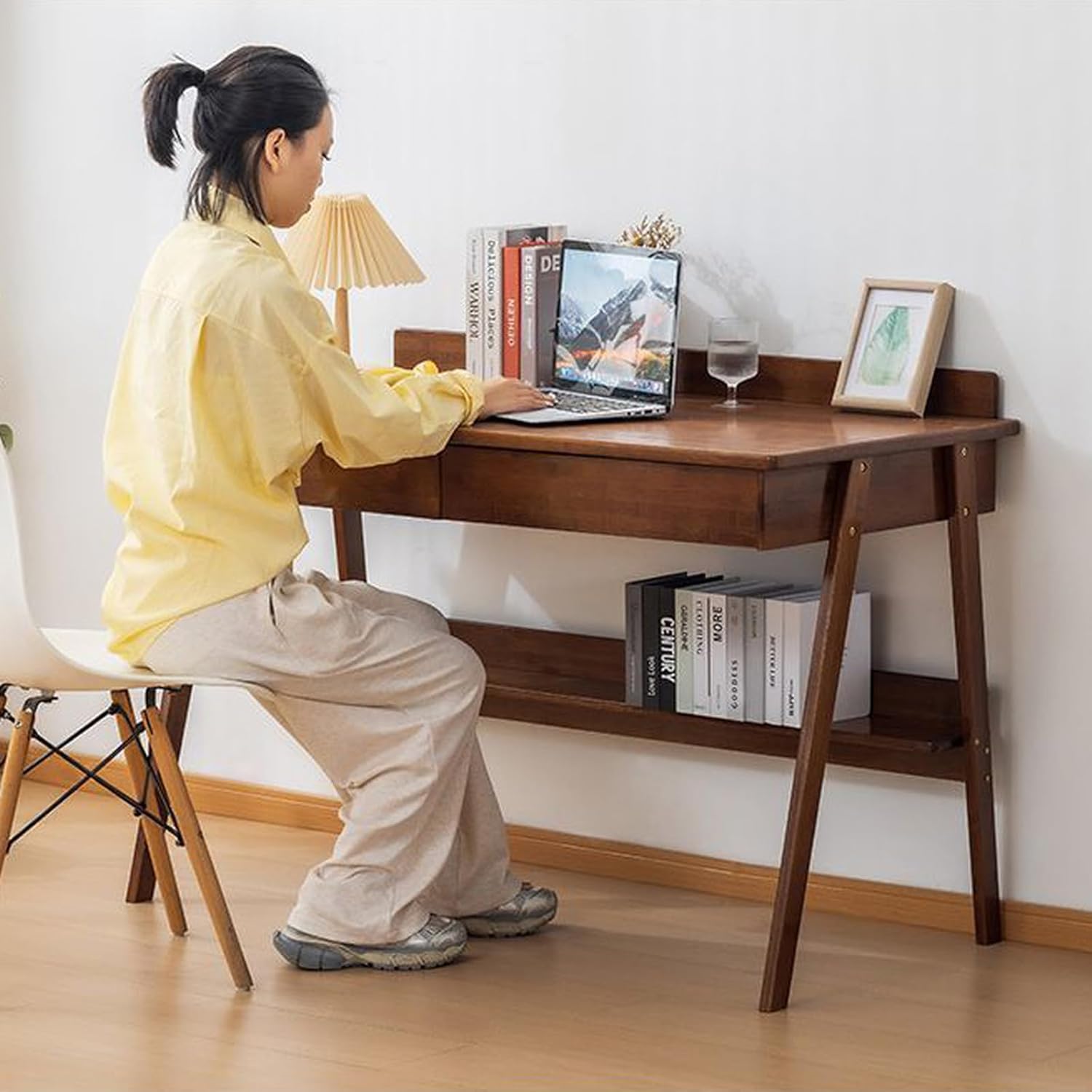 Upgrade your home office or living space with this elegant Bamboo Computer Desk with Drawer and Storage Shelf. Designed for both style and functionality, this modern desk blends seamlessly into contemporary interiors while offering ample storage and workspace.Crafted from premium bamboo wood, this computer desk delivers natural beauty and durability. The warm wood tone adds warmth and sophistication to any room, whether it's your bedroom, living room, or dedicated home office. The sleek, angled legs give it a mid-century modern flair, making it a standout piece in any setting.The built-in drawer provides secure storage for stationery, electronics, or personal items, while the lower shelf offers additional space for books, magazines, or decor. The back panel helps keep small objects like laptops, lamps, or picture frames in place—keeping your workspace organized and clutter-free.Lightweight yet sturdy, this writing desk is easy to assemble and perfect for students, remote workers, or anyone looking to create a cozy, productive corner at home.Whether you're working from home, studying, or just enjoying a quiet reading nook, this bamboo writing desk brings comfort, style, and efficiency to your daily routine.Package Contents:1 x Bamboo DeskProduct Specifications:Material: High-Quality Bamboo WoodColor: Natural, WalnutRecommended Use: Home Office, Bedroom, Living Room, Study AreaEasy to Clean: Wipe with a damp cloth; avoid harsh chemicals.Ideal Gift: A thoughtful gift for students, new homeowners, or remote workers.