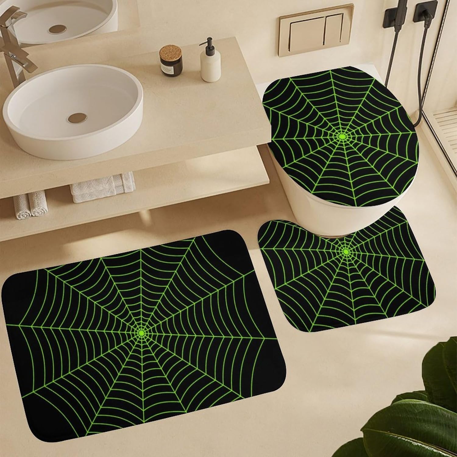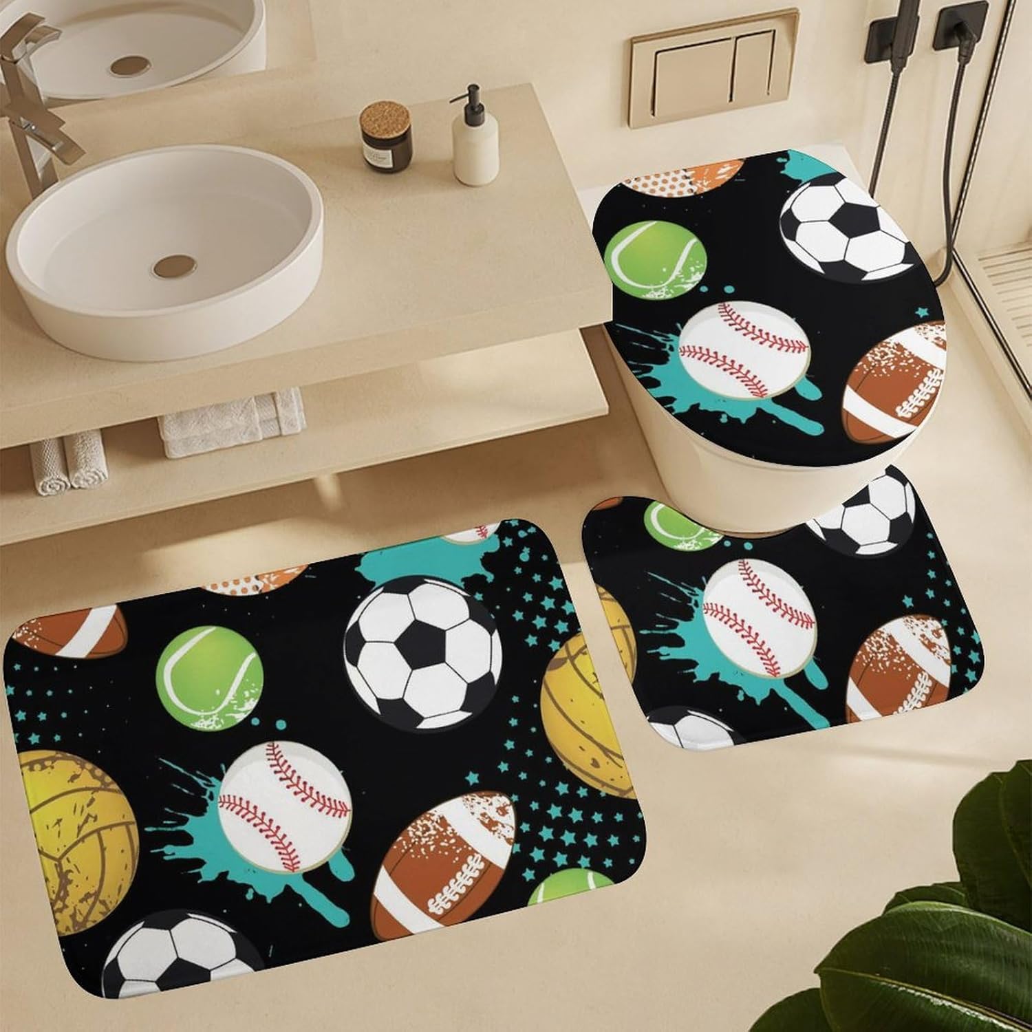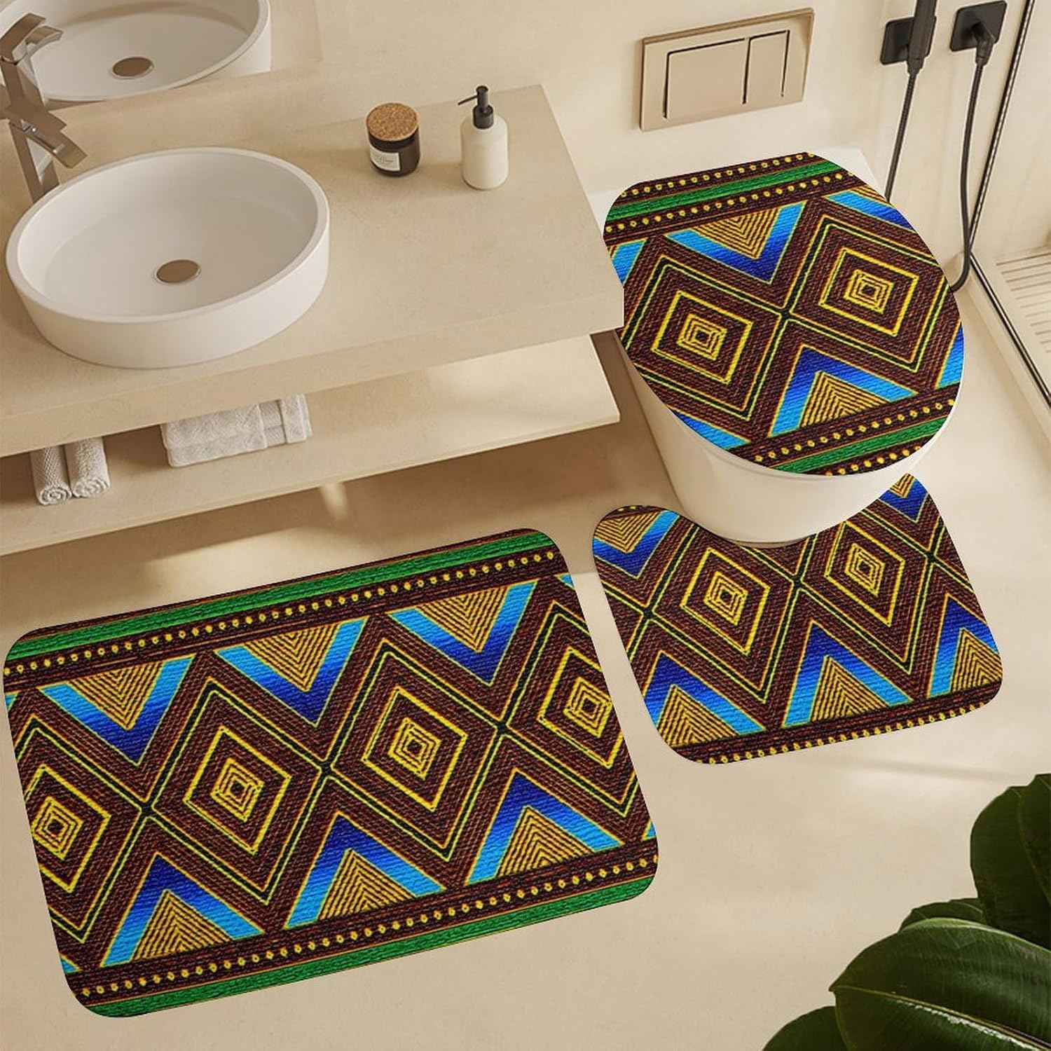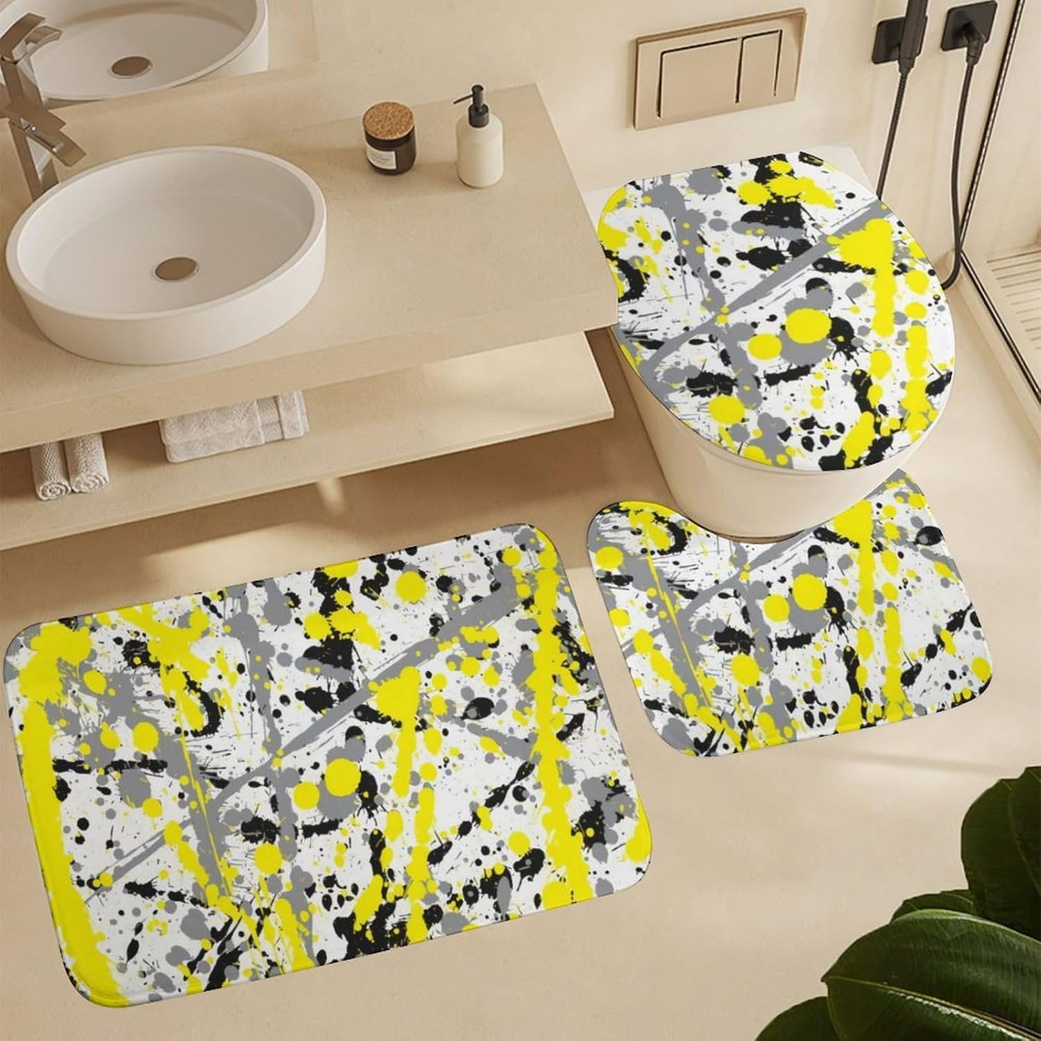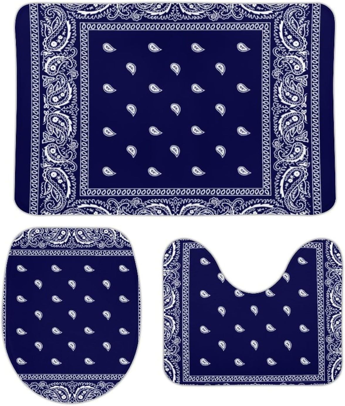 The bathroom floor mat set is very comfortable, the color is beautiful, it matches well with the shower curtain, the floor mat is thick, the padding is good, the water absorption is good, they can withstand washing and drying, and the anti slip backing works very well