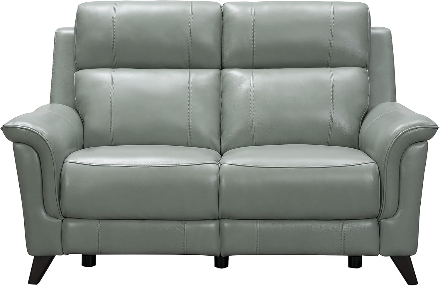 Mid-century modern elevated reclining loveseat with power recline and power headrests. This loveseat features box seat style pad over chaise seating with pocketed coil springs, tucked pillow arms, and clean line pub backs. Power buttons have USB ports to keep your devices charged. Matching sofa and recliner available. Legs are finished in a dark teak color. *Rongyao Mechanism with Kaidi Power *Hardwood Plywood, Mortise and tenon frames with glued joints and corner blocking, Extremely durable *Leather features distinctive design and luxurious feel. *Superior individual pocketed coil springs in seat cushions, encased in foam padding, wrapped in Dacron *High resilience seat foam for superior durability and comfort. *Medium seat density. *Warranty: 1 Year.