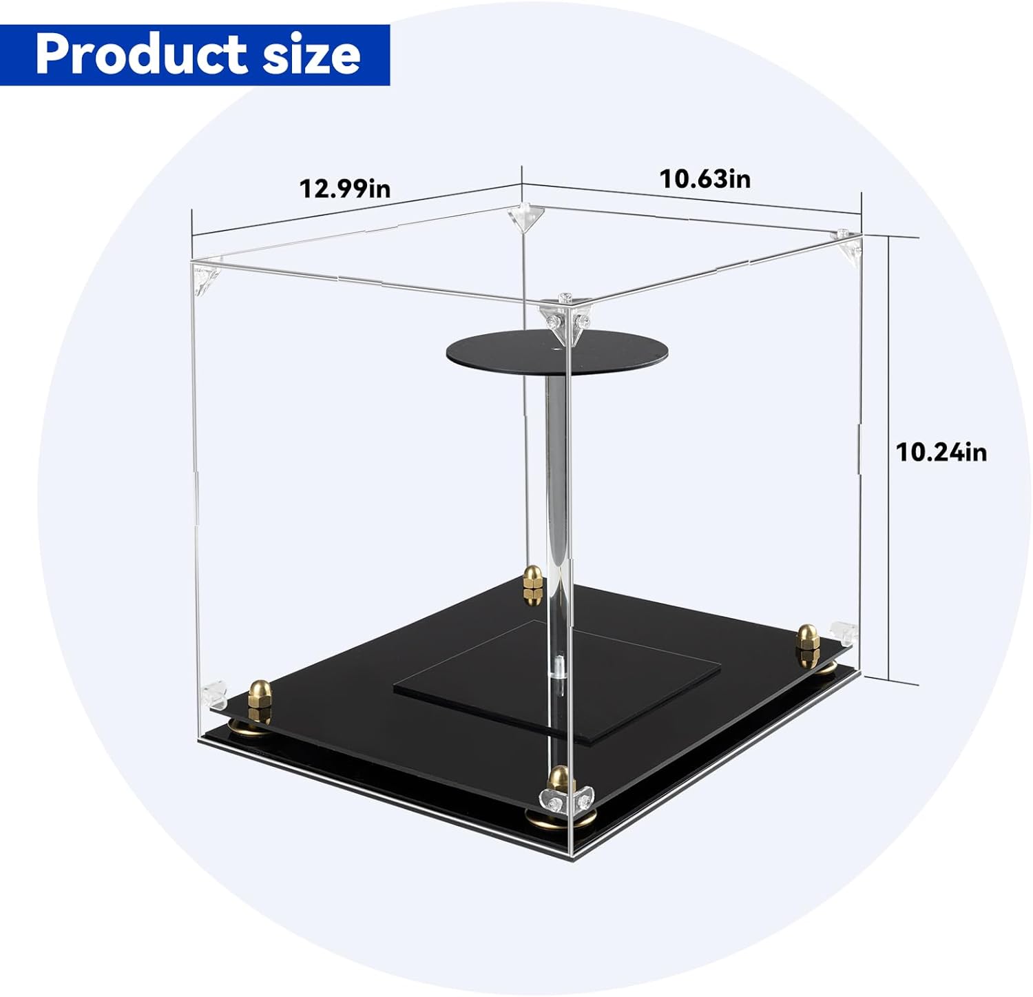 Baseball Batting Helmet Display Case Acrylic helmet showcase with riser stand NOTE!!! Please tear off the protective film first. Each acrylic panel and base part has a protective film. Please tear them off before assembly. Size: The product's internal dimensions are 13.15 x 10.71 x 10.39 inches Can accommodate most helmets, making it ideal for storing valuable sports memorabilia and various other keepsakes. Resist dust: Use our helmet souvenir display box to effectively prevent dust and moisture, protecting your collection to always maintain its beautiful appearance. Multiple Uses: Our display boxes can display your helmet, sports collectible souvenirs, figurines, dolls, models and more, it is a good choice for giving to collectors and displaying souvenirs.NOTE: Helmet not included