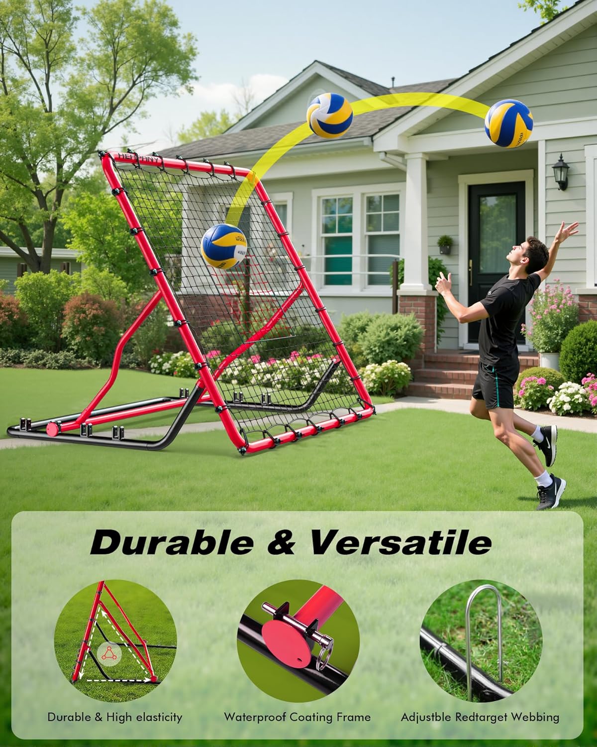 Heapany Volleyball Rebounder Net - Professional Grade Training Partner for Athletes & CoachesElevate your game with the Heapany Volleyball Rebounder Net, the ultimate adjustable training equipment designed to sharpen spikes, perfect serves, and boost reaction time. Crafted with heavy-duty PE netting and rust-proof aluminum alloy frames, this 7x4ft rebound net withstands intense drills, from indoor volleyball practice to outdoor soccer training and lacrosse ball control sessions.