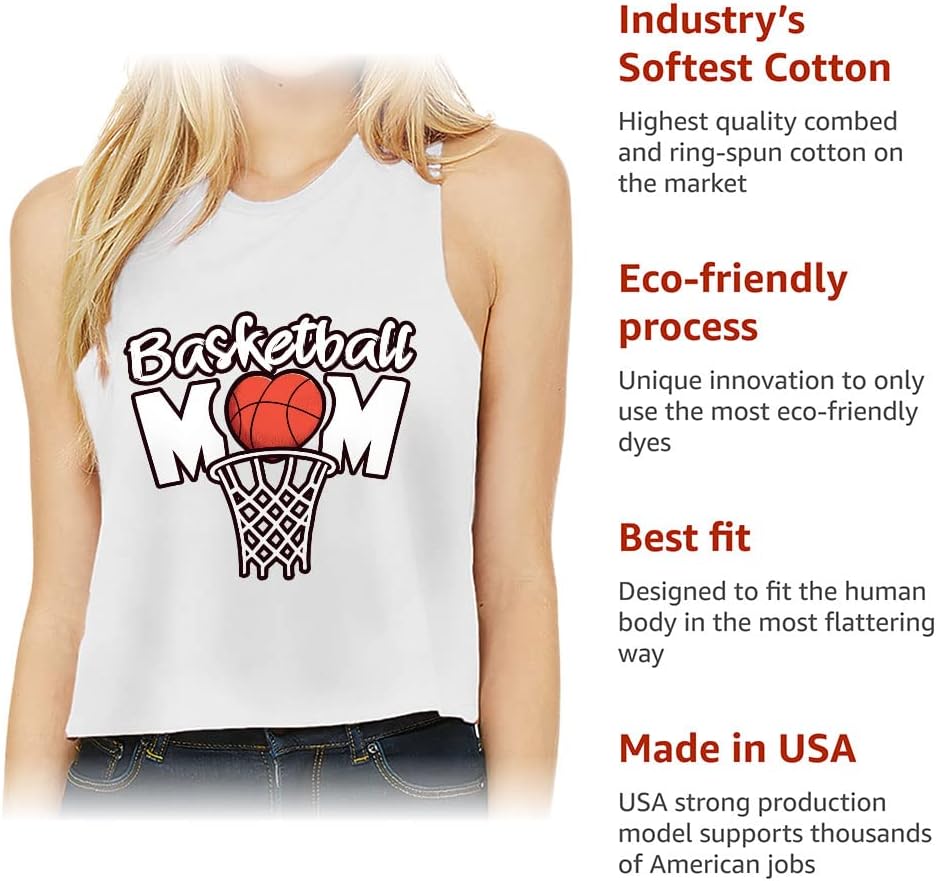 Cute and flattering Basketball Mom Racerback Cropped Tank is suitable for most indoor or outdoor activities, such as gym, yoga, running, hiking, beach or relaxing around the house. Pair Themed Women's Tank with your favorite sports bras, especially strappy ones, and high-waisted leggings, then you will enjoy cool and comfortable exercise throughout the summer.