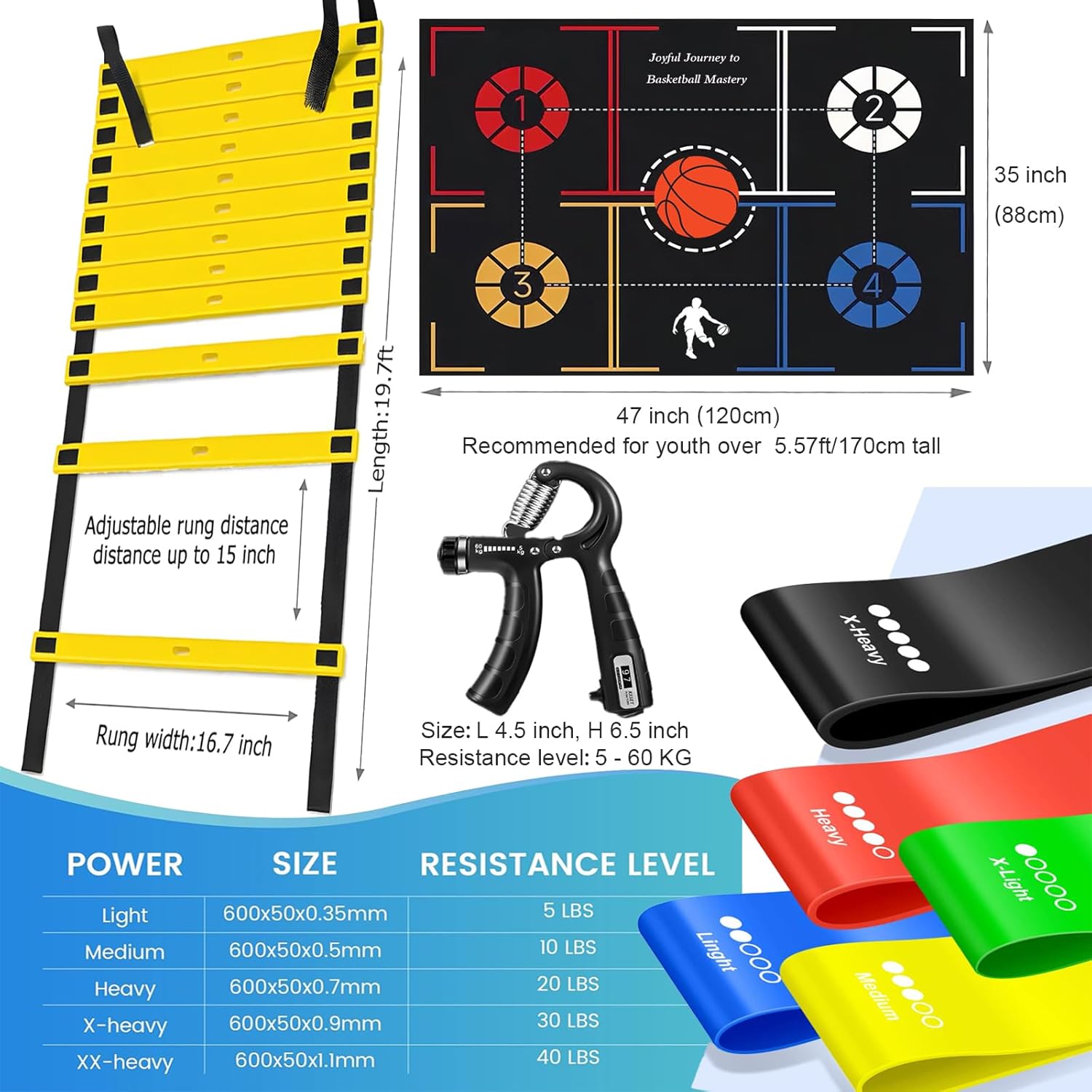 | Included Components | 47"*35" Basketball Training Mat, Agility ladder, Hand Grip Strengthener, Resistance Bands |