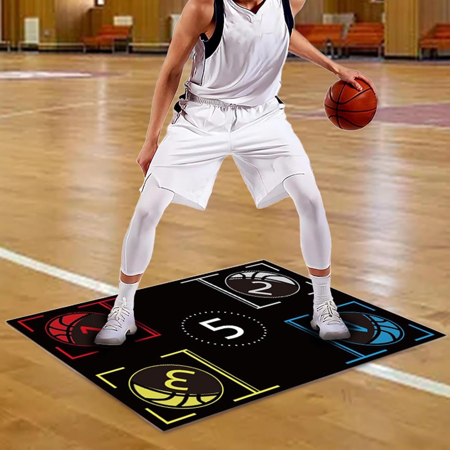 Description: - 【Product Type】: This is a Basketball Training Mat, great for footwork exercises and overall basketball training. - 【Material】: Made from rubber, this Basketball Footwork Mat ensures durability and longevity while providing grip to prevent slipping during exercise or training. - 【Develop Basketball Skills】: This footwork training mat helps develop key basketball skills: enhance footwork, jumping, control, and more. This basketball training mat is versatile training mat for all basketball players. - 【Application】: Ideal for both professional athletes and beginners, this mat can be use at home or in the gym to improve your basketball skills. - 【Versatile Use】: Apart from being a great tool for basketball training, this mat also serves as a soundproofing layer and can be use for various fitness exercises, adding versatility to your indoor workout routine.Specification: - Material: RubberPackage Includes:1 Basketball Footwork Training MatNote:Please allow slightly errors 1-2cm differences due to manual measurement.