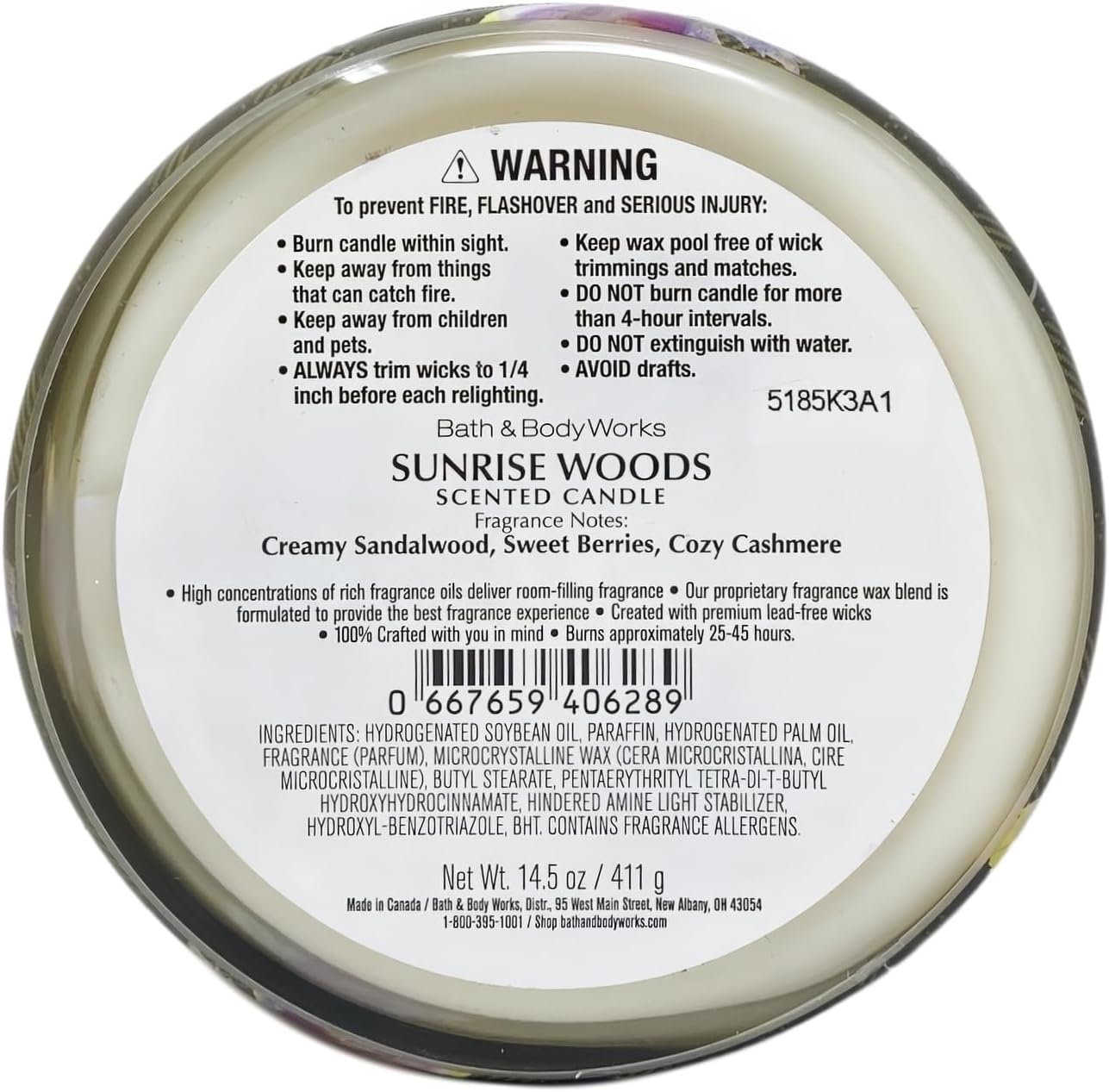 Bath & Body Works Sunrise Woods 3-Wick Scented Candle with a 4 oz Marbela Cherry On Top Bar Soap (Ingredients: Saponified Oils of: Olive Oil, Organic Virgin Coconut Oil, Shea Butter, Castor Oil, Vitamin E, Mica, Sodium Lactate, Titanium Dioxide, Fragrance, Kaolin Clay).