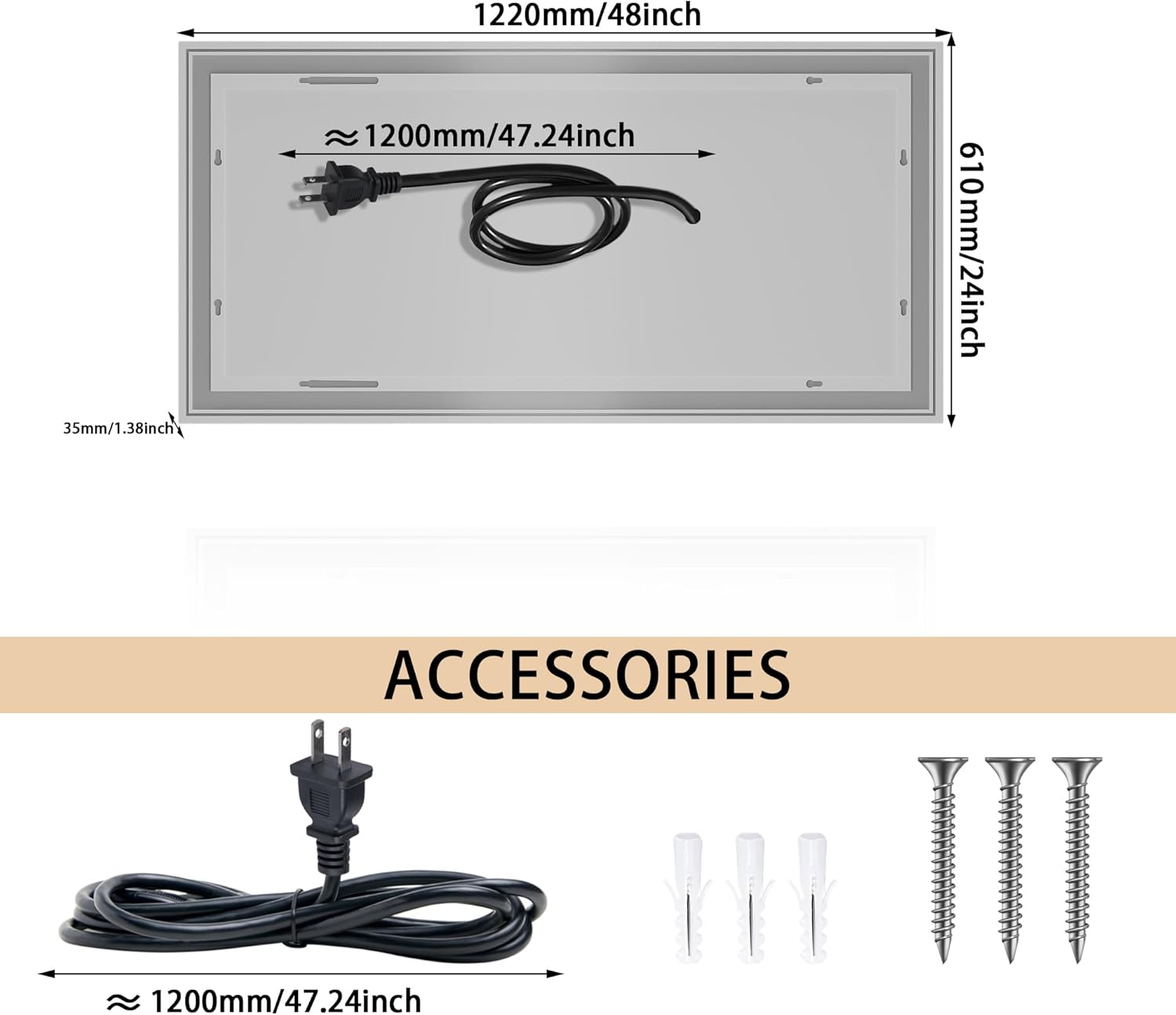 | Item Type Name | Uneeruiqy 48 x 36 Inch LED Bathroom Mirror, LED-Lit Bathroom Mirror With Adjustable Brightness Lights Rectangular Vanity Mirror, Wall Mounted Anti-fog Memory Mirror For Bathroom LED Mirror White |