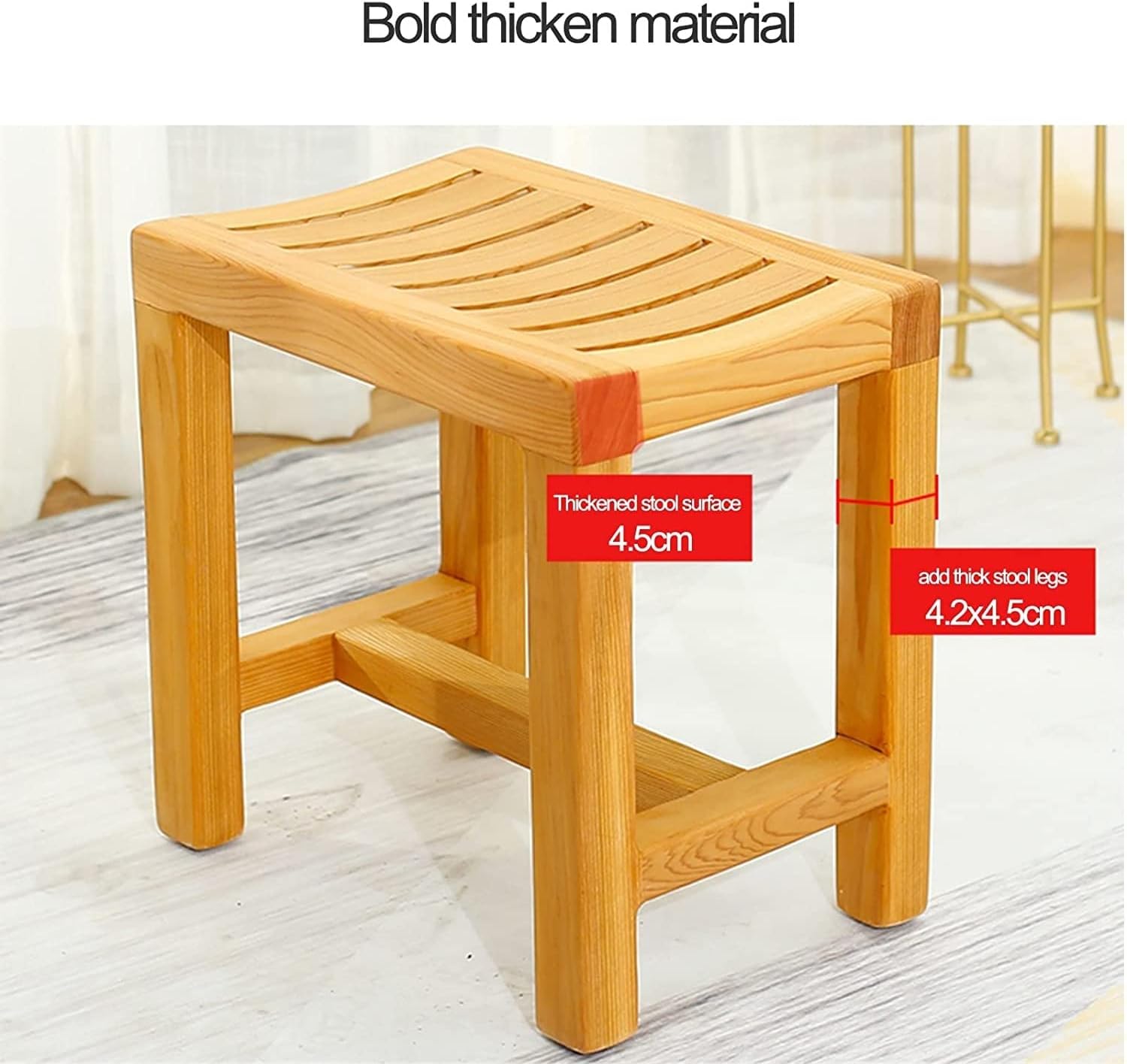 Limited mobility affects and complicates daily life immensely. Such a situation can have many causes, such as an accident or illness. When someone reaches a certain age, for example, familiar movements become increasingly difficult.This shower stool helps elderly or disabled people to enjoy their baths and showers in complete safety and comfort.Specification: Weight Capacity: 250kgMaterial: solid woodColor: brownIdeal for the elderly, grandparents, disabled or people with reduced mobility.hint:1. Due to different monitors and lighting effects, the actual color of the item may be slightly different from the color shown on the picture. Thanks!2. Please avoid 1-3cm measurement deviation due to manual measurement.We guarantee there is no risk in buying hereIf received other or damaged items. Please contact us before providing any feedback. We will solve it for you.