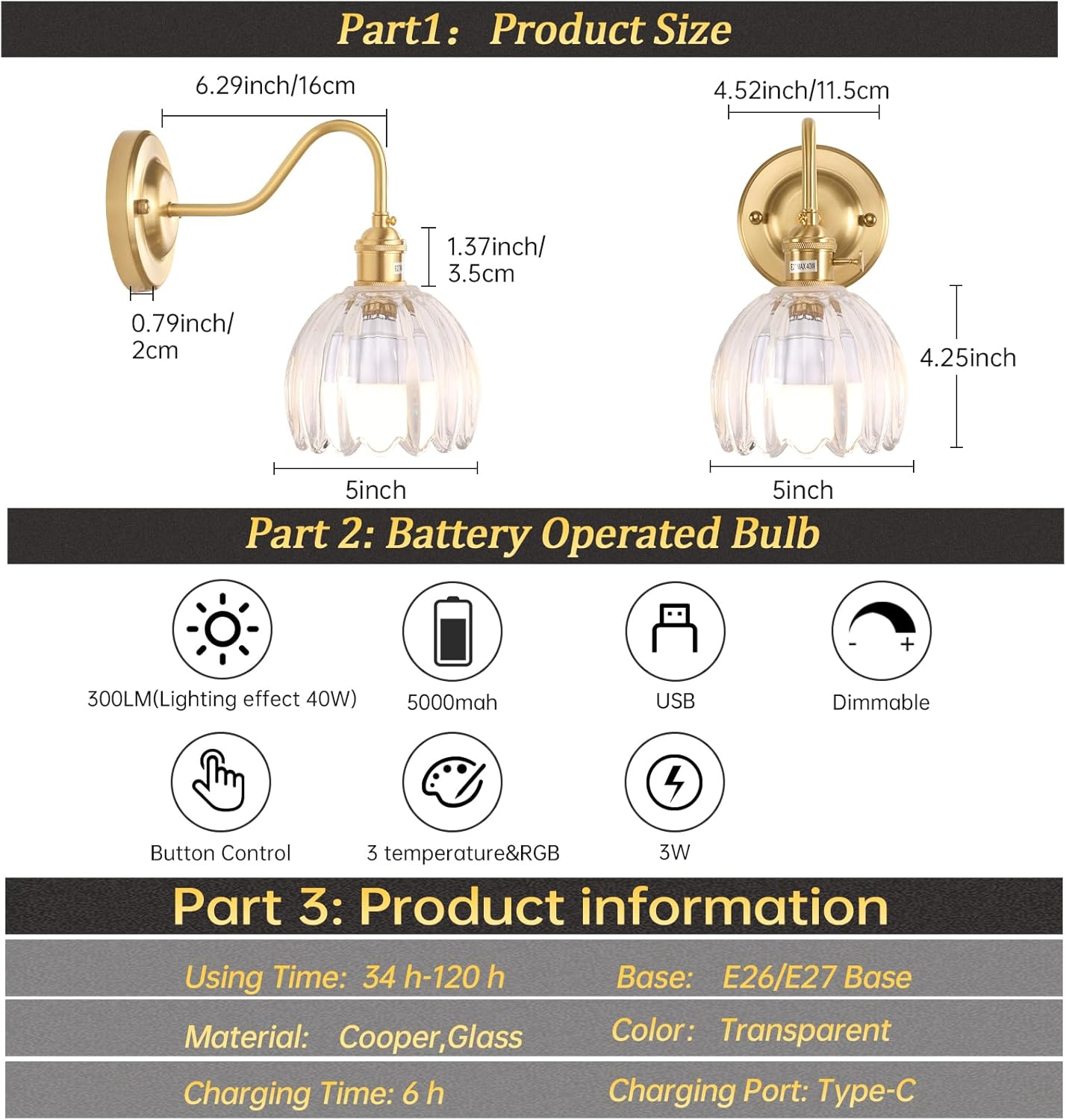 | Brightness | 300 lumen |