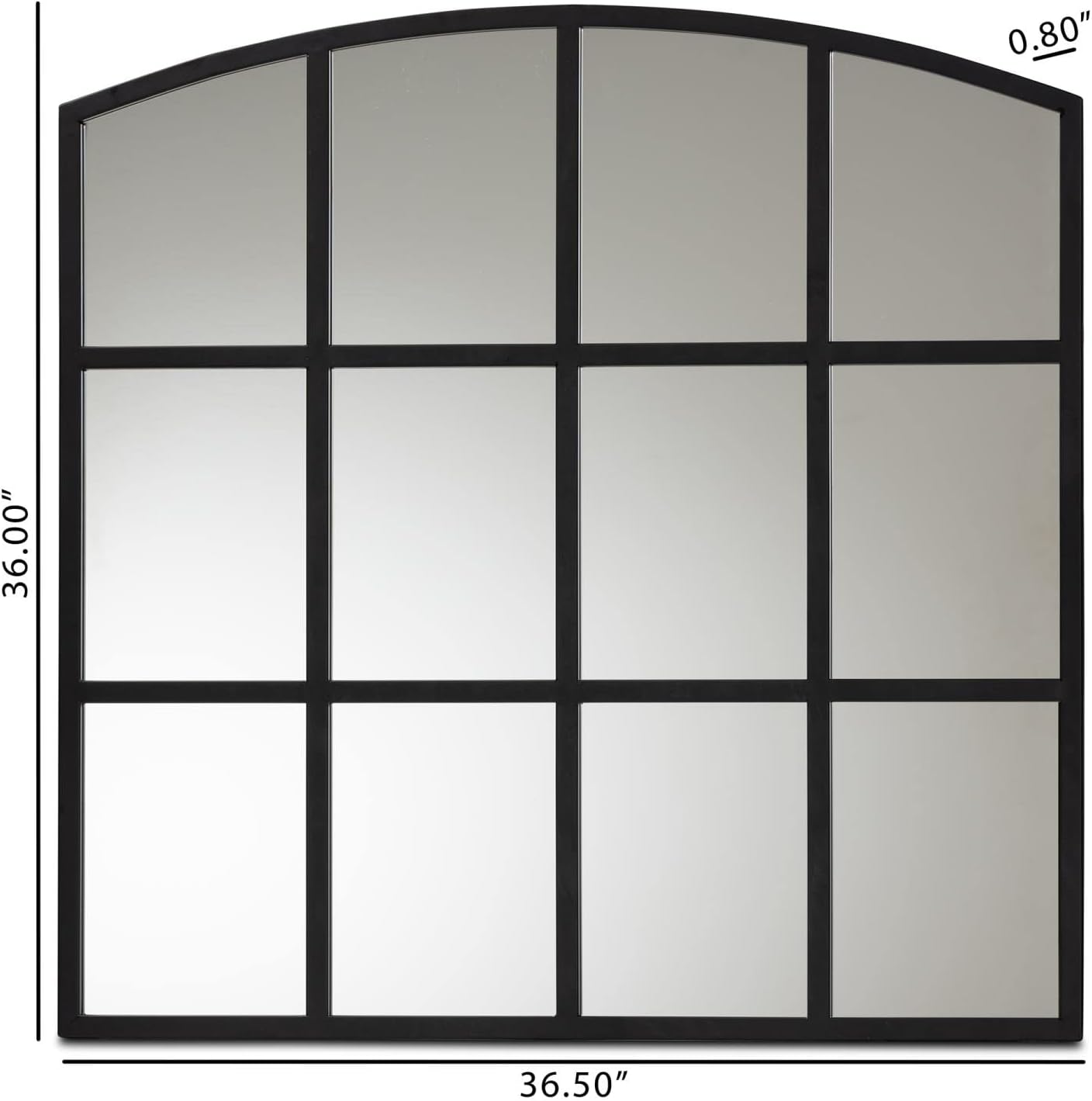 Craft a distinctly modern ambiance in your home with the remarkable Barrington wall mirror. Made in China, the Barrington features a black finished metal frame interlaid with rectangular mirrors. Clean lines and sharp angles create a sleek, geometric display, while the arched frame adds the illusion of depth to tight spaces. The Barrington will arrive fully assembled and is wall mountable. An impressive exhibit of contemporary design, the Barrington is a stunning addition to the modern home.Features:- Modern and contemporary accent wall mirror- Constructed from mirrored glass, metal, and engineered wood- Black finish- Arch design- Wall mounting hardware included- Fully assembled- Made in ChinaSpecifications:- Product Dimensions: Dimensions: 36" High x 36.5" Wide x 0.8" Deep;