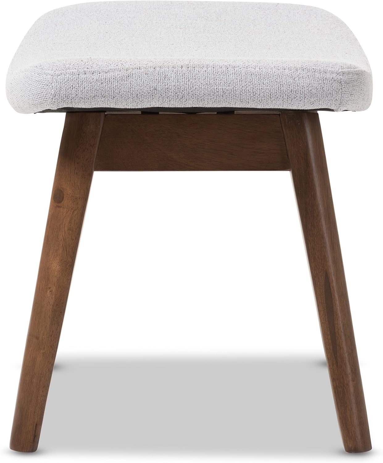 Embrace luxury in your casual space with the understated comfort of the Claudia ottoman. Constructed of solid rubberwood frame in dark walnut stain, the Claudia is upholstered in light grey polyester fabric, providing exceptional strength while maintaining compact and smooth surface texture. Padded with high-density furniture foam for structural support, the Claudia features sleek design with tapered legs and Scandinavian-inspired, mid-century styles-lines for contemporary looks. Made in Malaysia, the ottoman requires assembly. Dimensions: 15.35" high x 17.72" wide x 14.57" deep; seating Dimensions: 15.35" high (from floor) x 17.72" wide x 14.57" deep