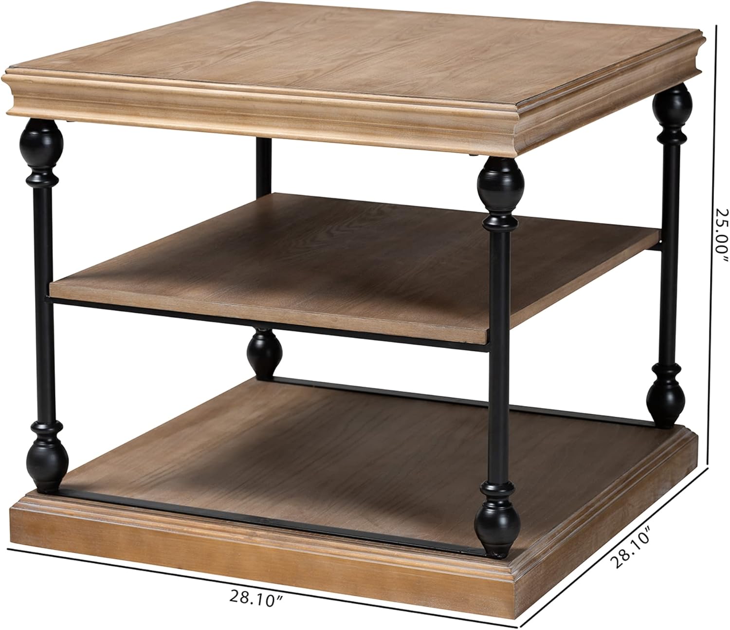 Endow your common area with the Sebastian end table as a timeless yet efficient space anchor. Made in China, this stunning piece takes inspiration from industrial design with a solid metal frame fitted with wood shelves. Three tiers of square-shaped shelves offer space for both storage and daily use while radiating soothing tones form the wood. The Sebastian requires assembly and features turned metal legs for excellent stability and support while lending an ornate feel. Beautifully crafted edges form a superb silhouette, making the Sebastian end table a remarkable household accessory.