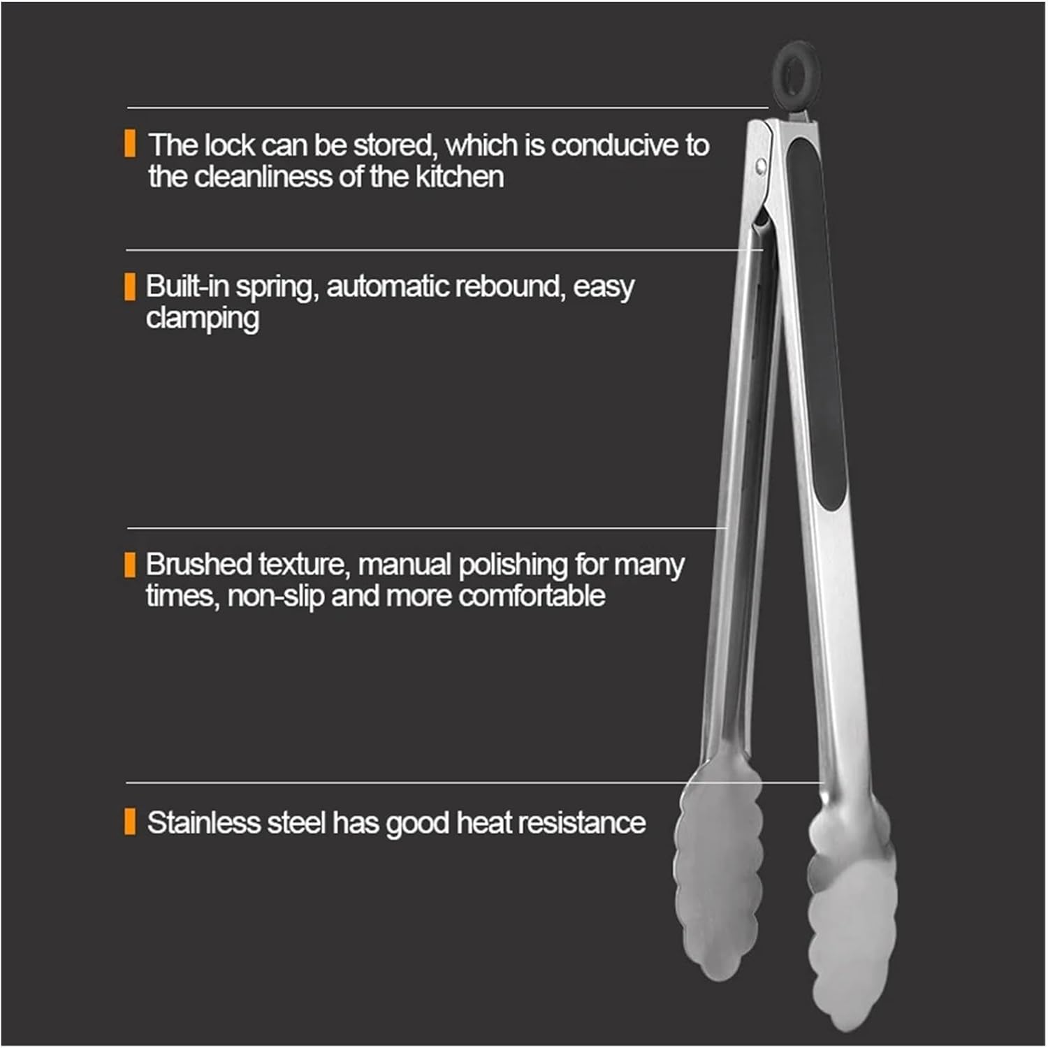 Great for Cooking Ribs, Roasts, Chickens, Turkeys, Hams and more; Perfect for slow cooking, barbecuing, camping, picnics, and other outdoor activities.Product Name: Stainless Steel Food ClipMaterial: stainless steel +TPRProduct features: multi-function, food tongsProcess: Brushed sandingApplication: household, baking, restaurant, etc.Package:1*Food tongsSuitable for cleaning oven outdoor grill rack,etc.with little cleanser and strength,saving labor.