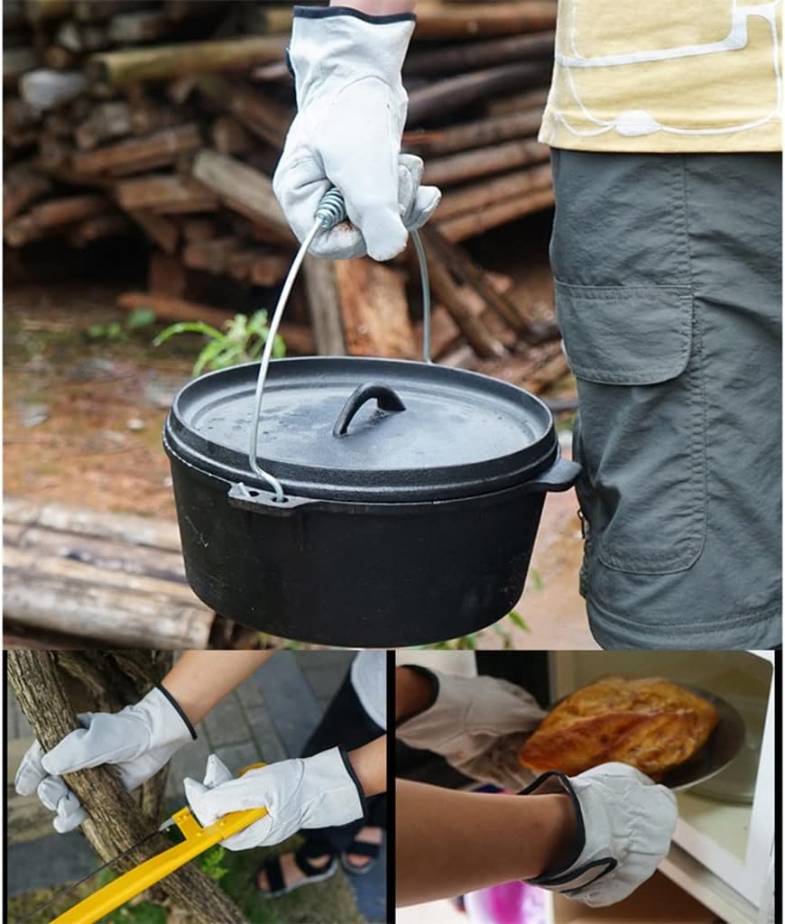 Soft material: The BBQ grill gloves come with cotton liners, which are soft, skin-friendly, breathable, comfortable to touch.Adjustable: The cooking mitts are designed with sticky straps to make these gloves fit various hand sizes, suitable for both women and men to wear.Wide applications: The grilling gloves are for baking, roasting, cooking, ovens, microwaves, stoves, fireplaces, campfires, and more.Special gift: The grilling gloves are great presents for family members and friends, providing special protection for their hands.Safe: The BBQ grill mitts are designed to prevent your hands from being scalded by heat, making them cooking tools for chefs.Material: Cotton.Size: Approx. 23.5x10cm/9.25x3.93 inch.Package Includes:1 Pair BBQ Grill GlovesThere might be a few color distortions due to different computer resolutions.There might be a slight error due to different hand measurements.Versatile & Multipurpose:The most versatile grilling accessories tool for baking, cooking and grilling, they can be used inside the kitchen for baked goods, by the grill for barbecue chicken, frying turkey,Meat Smoker, Grills,Welding or even the fireplace