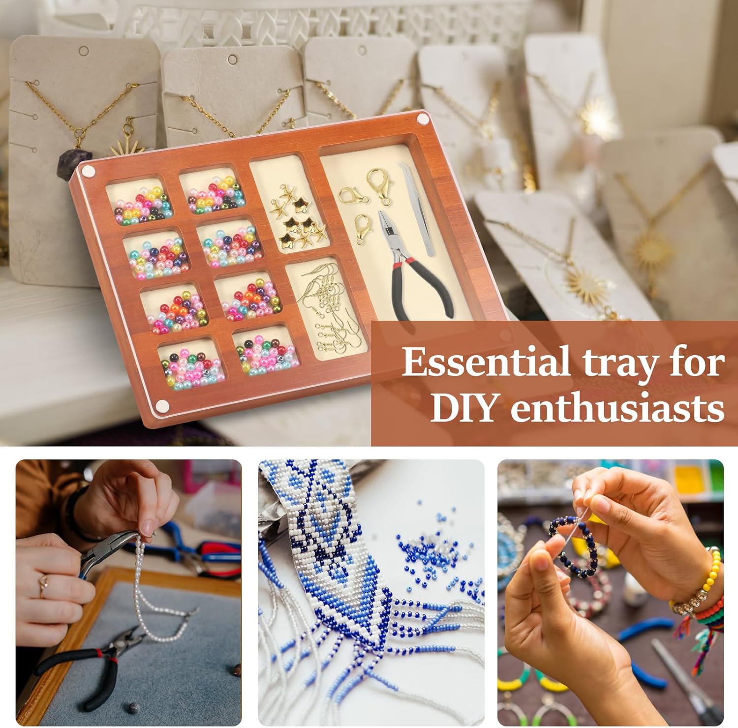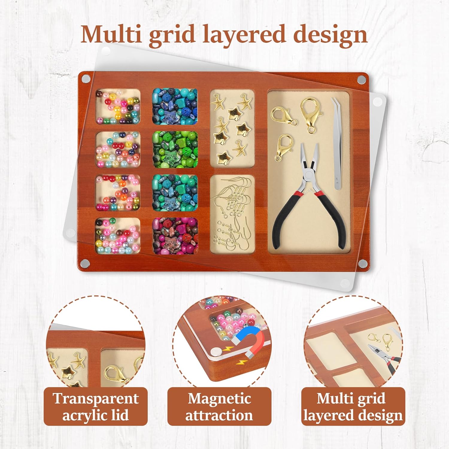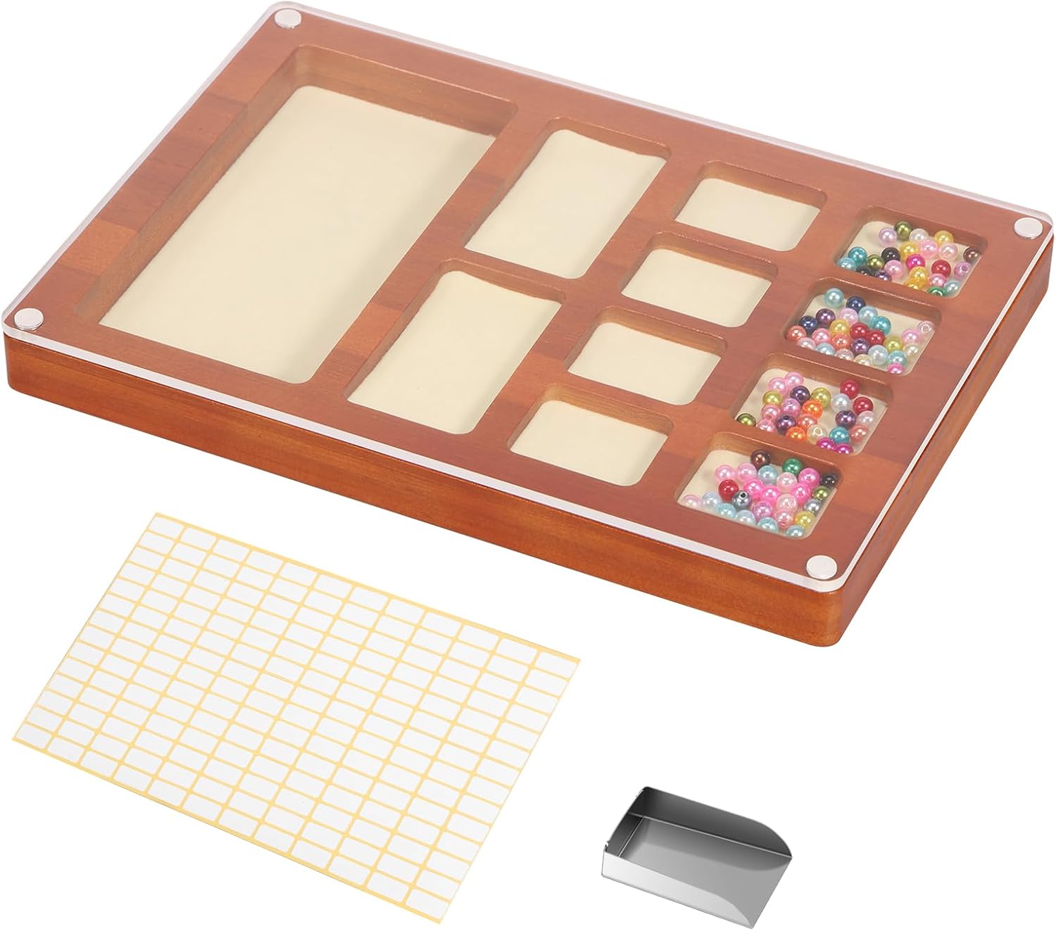 Parts List:1 x Bead Sorting TrayDescription :The creative storage box specially created for DIY enthusiasts is suitable for storing 3D dimensional metal assembly puzzles , beading , tools , accessories and other storage functions in one , classified and stored more efficiently , and say goodbye to clutter .Key Feature :Padding Design : The bottom is equipped with a soft cloth that will not damage the beads and tools , and increases friction , so that the beads are not easy to spill around .Specification:Product Name: Bead Sorting TrayMaterial: WoodColor:Style Optional: Style 1, Style 2Size: 25.5x17.5x2.5cm/10.04x6.89x0.98 inchNote:1.This product is not suitable for children aged 13 and under.2.There may be slight differences between the picture and the actual color and texture of the commodity. We will try our best to show you the exact color.3.Please allow slight dimension difference due to manual measurement.