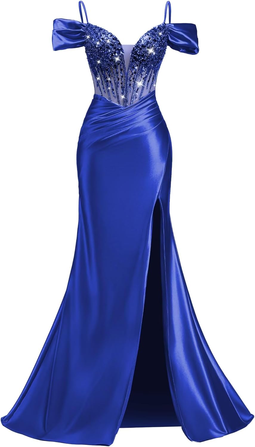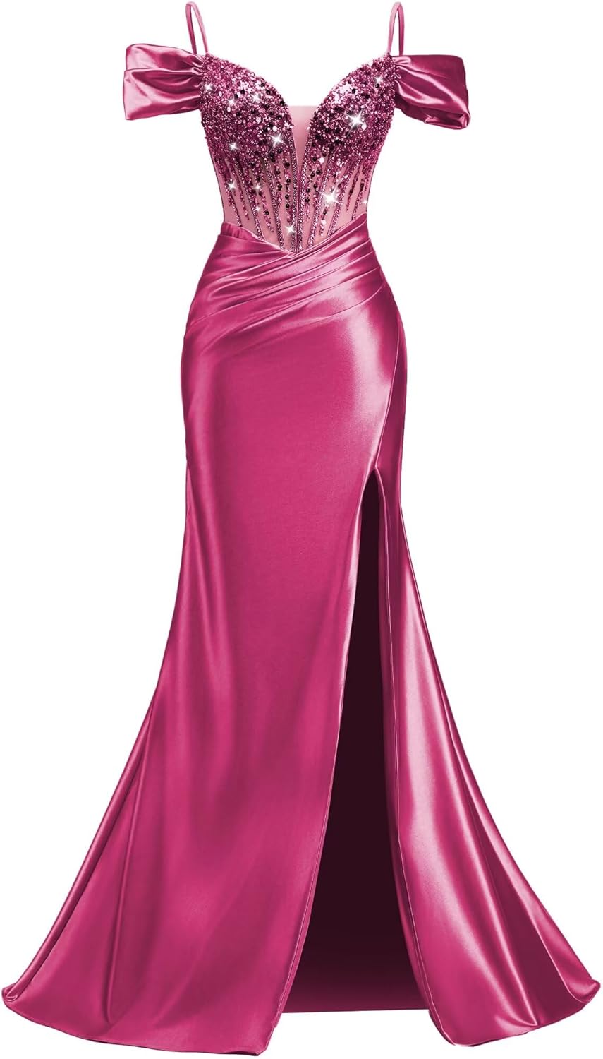 | Embellishment Feature | Beaded Sequin Prom Dresses for Women, Corset Prom Dress, Mermaid Prom Dresses, Prom Dresses with Slit, V Neck Satin Prom Dress |