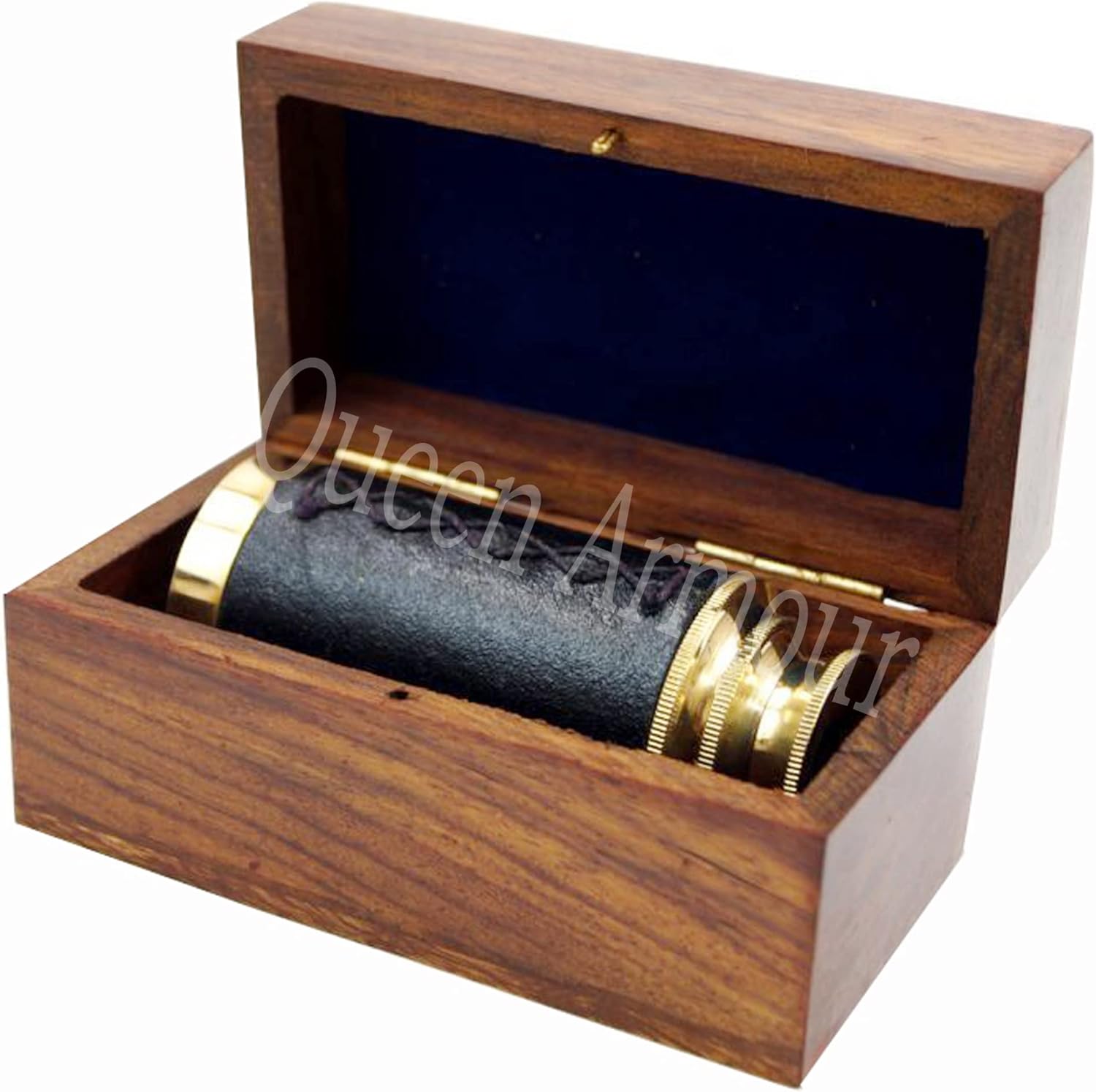Material : Brass , Glass & Wooden Box Height : 6" inch Color: As shown Picture Fully Extended Length : 6 Inches (Approx) | Package Contains : 1 x Telescope (Brass Polished) With Box Material - 100% Solid Grade Brass + Rosewood (Premium Grade) + Leather | High Quality Premium Affordable Hobby Telescope. Great Learning Gifts For Kid's & Teen / Wonderful Bulk Gift Idea / Birthday Present / Rosewood Anchor Inlaid Handmade Case / Functional Pretend Electronics Telescope.Sturdy Built Body / Superb Craftsmanship From Indian Artisans / Wonderful Nautical Decor Piece / Fully Solid Robust Design. The Perfect for Nautical Gift, theme Party decorations decals/ Collector's And Home Decorative.