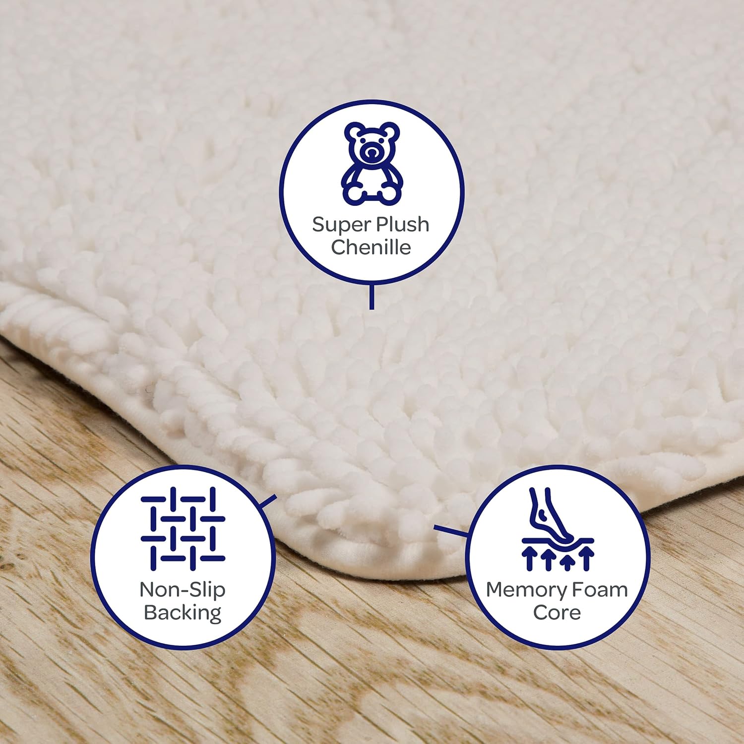 Spruce Up Your Space with Premium Quality Bath Mat Bedford Home 2 Piece Memory Foam Shag Bath Mat Set will refreshen any area of your home, office, hotels, spas, sauna, or gym shower, and anywhere else you need a premium bath mat with its pure white color and elegant cozy design! Perfect bath mat choice to use to add that luxuriously bold pop of style to your space! Made from 100% Ultra Soft Chenille Featuring a velvety soft to the touch top layer of high pile polyester chenille with a memory foam core to bring you maximum comfort while you dry off. Sink into the soft, cushy foot bathroom shag rugs that are warm and feel amazing on bare feet. Even your pets will enjoy sitting on this soft and mat, too! Fast Absorbent, Anti Slip Backing Design It's time for an upgrade! Bedford Home Bath Mat Set includes two bathroom rugs made from soft, absorbent polyester chenille microfibers designed to absorb water and keep your bathroom floor dry and clean, with a skid-resistant back and an anti-slip rubber backing to help prevent accidental slipping due to wet floors. Machine Washable Mat Simply throw the rug in your washing machine on warm with gentle detergent and dry - your bath mat will be still as good as new! No fiber shedding nor tearing! To extend the rags’ color and texture, use only non-chlorine bleach, hang to dry, or air dry. 100% Polyester Material: Super plush polyester chenille, memory foam core Non-slip backing, pile height: 1 inch Care Instructions: Machine Wash Cold, Gentle Cycle Standard rug: 24 inches x 17 inches x 1. 25 inches Oversized rug: 32 inches x 21 inches x 1. 25 inches