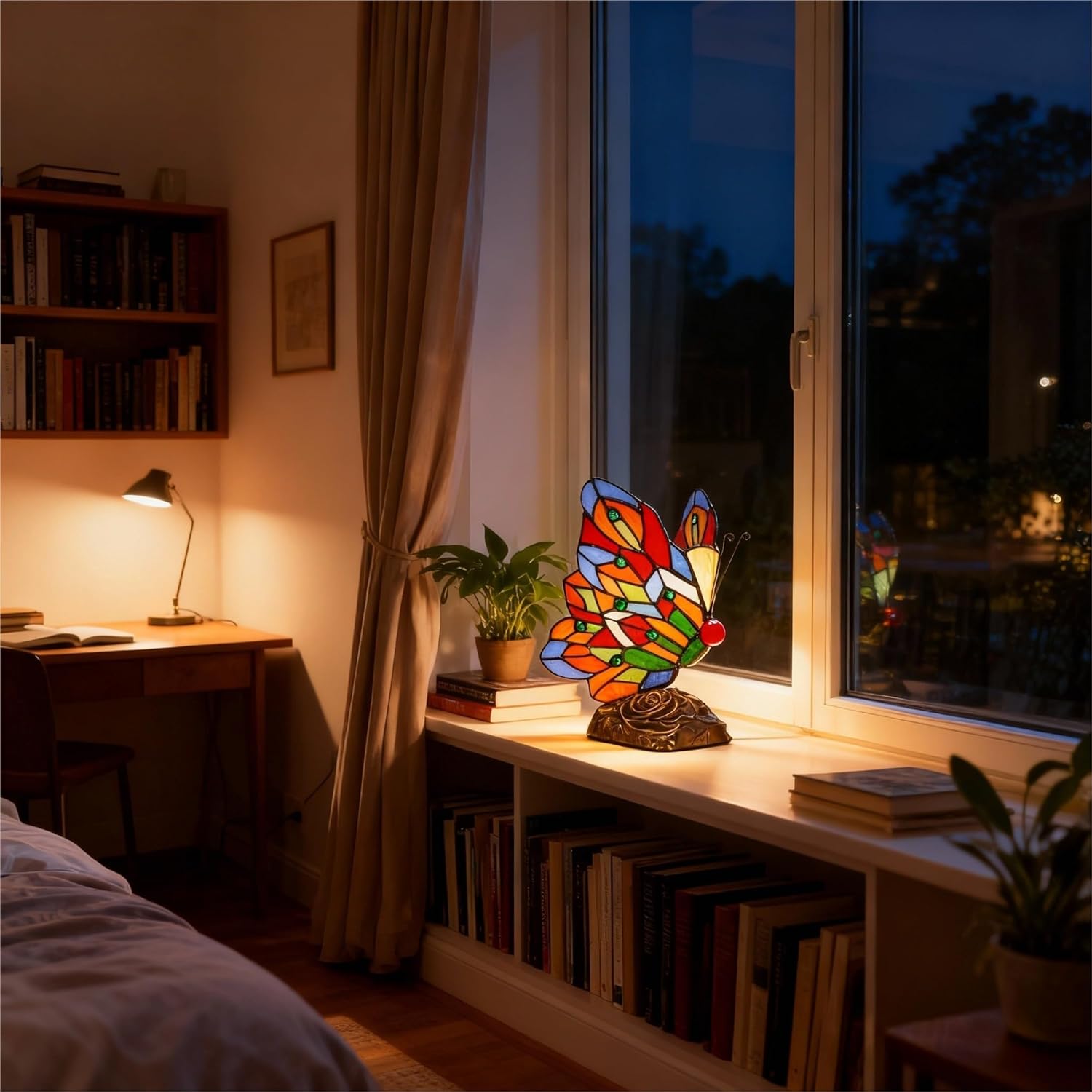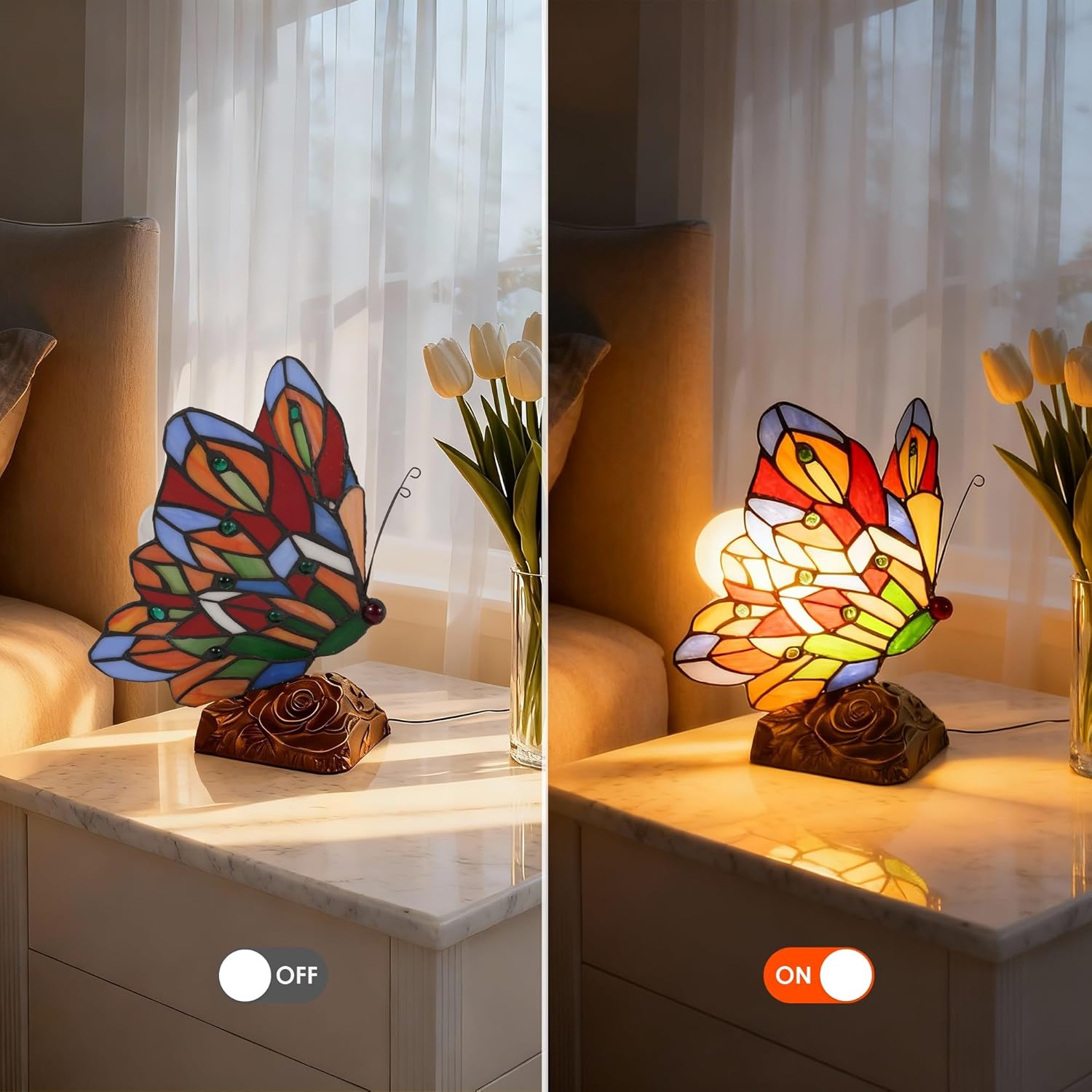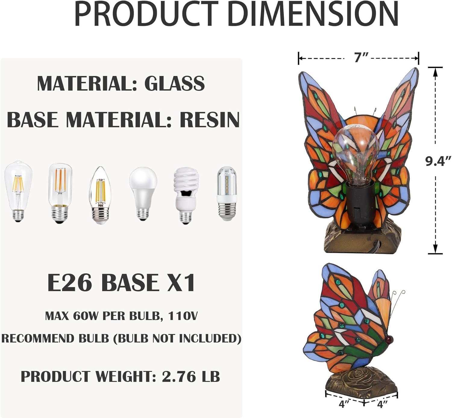 mfanchan Glass Butterfly Table Lamp, Vintage Butterfly Desk Bedside Night Light, Antique Living Room Bedroom Reading Lamp