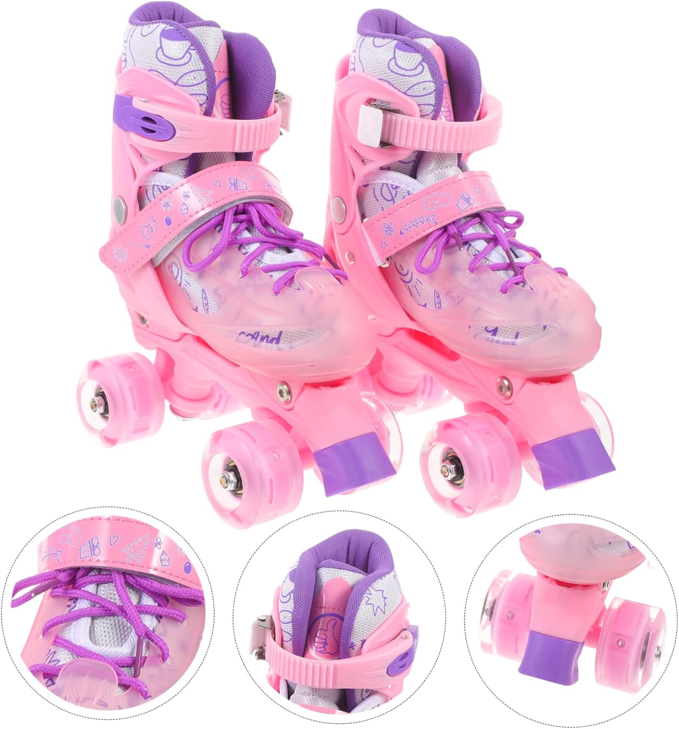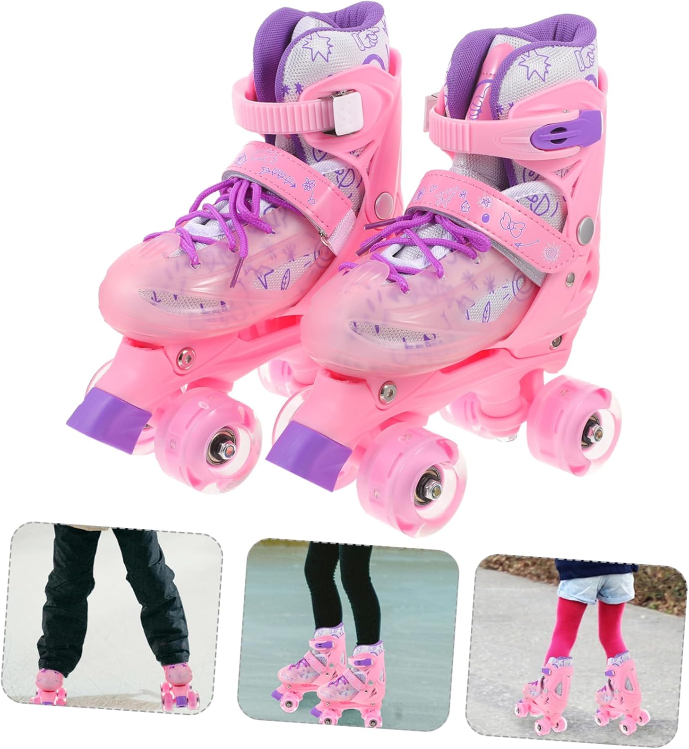 Package List 1 x Pair of Roller Skates Features -Size:26.00X22.50X11.00cm/10.22X8.84X4.32in beginner rollerskate -Note:Suitable for shoe size 30- protective skate shoe. -Material:PVC,PP roller skates -Color:Pink protective roller skate -Made of material comfortable, breathable, protect your feet and make you healthier roller skates for . -Colorful design, fashionable beautiful, let you , make you more fashionable training skating shoe. -It resists the normal wear and tear of the ground very well, allowing you to roll smooth and fast, giving you a smoother ride double row skating shoe. -Multifunctional shoes, which can be used in roller skating, ice skating, roller skating and other scenes, making you more adjustable rollerskate. -This product has a simple design and can be directly connected to the shoe, making it more convenient for you beginner skating shoe.Goods Descriptionprotective rollerskate Colorful design, fashionable and beautiful, let you like it even more.training skate shoe Made of material, comfortable and very breathable to protect the health of your feet.roller skates for This roller skate is a versatile shoe that can be used in roller skating, roller skating, and many other scenarios