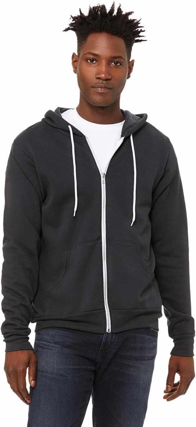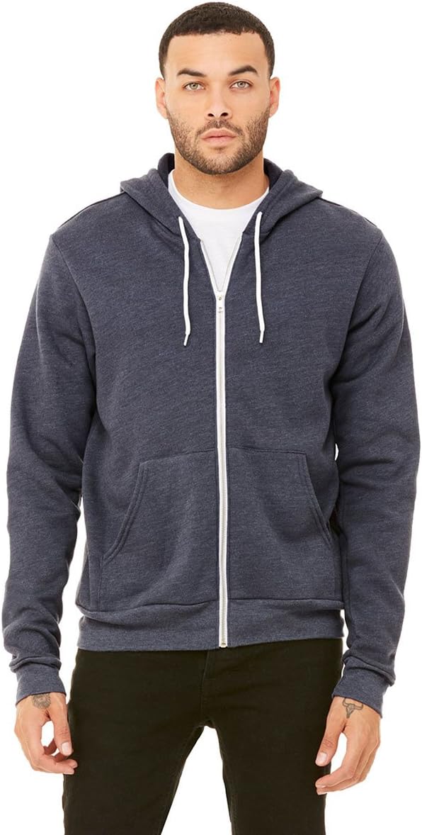 Bella Canvas Men's 3739 Unisex Poly-Cotton Fleece Full-Zip HoodieFront zip closureHoodie with drawstring for an adjustable fitSplit kangaroo pocketsLong sleeves with rib cuffs and hem for a snug fitCotton Blends