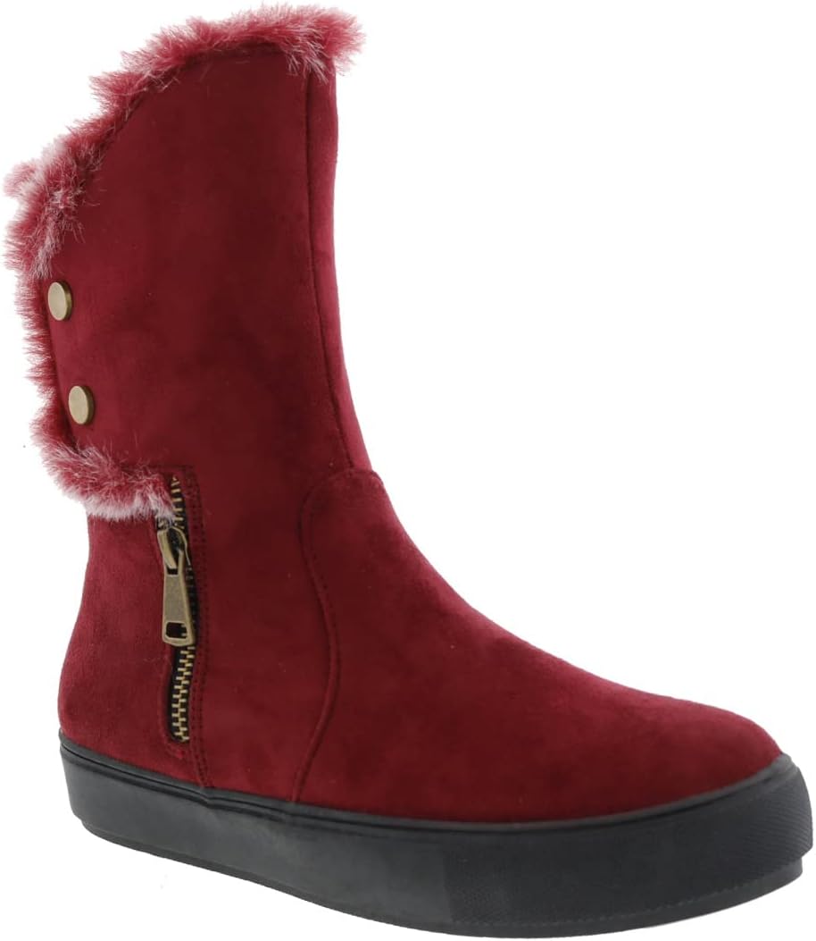Defy the cold in these Furry microsuede boots. Enjoy a cushioned footbed for superior comfort with a 1" unit rubber flat sole that provides a steady surface to help you brave all of the elements. A functional medial zipper makes for easy on and off and results in one comfortable casual boot.