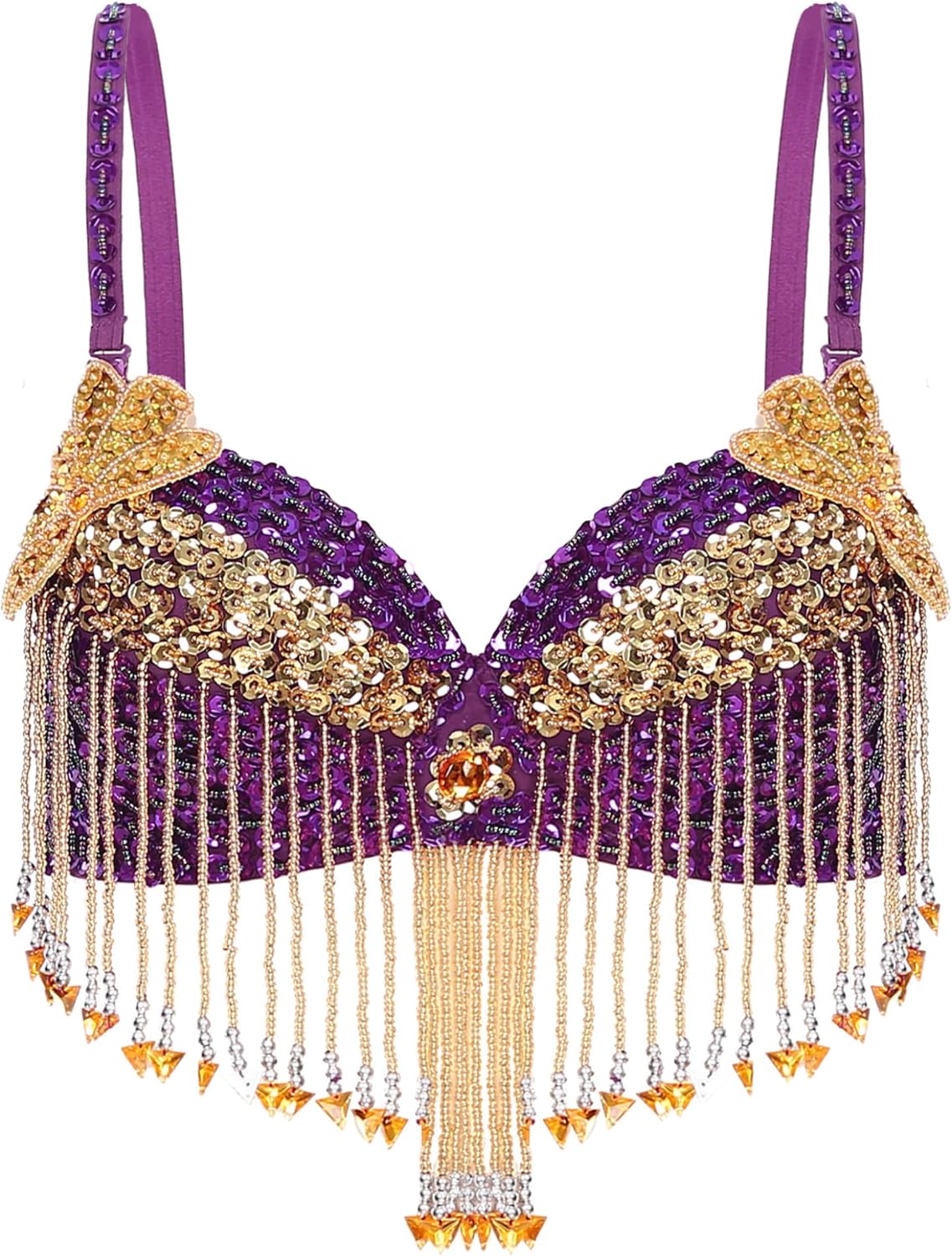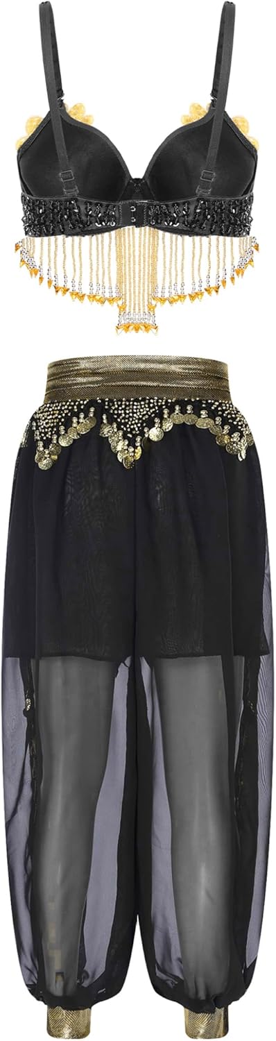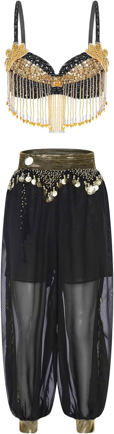 Set Include: 1x Dance Bra, 1x Pants Condition: New without tag Material: 65% Polyester, 35% Plastic -Tag No.---|---Recommended Size---|------Chest------|---Fringe Length---|-------Pants Waist-------|---Pants Length One Size---|-------One Size-------|---26.0''/66cm---|-----5.1''/13cm----|---27.6-35.4''/70-90cm---|---40.2''/102cm