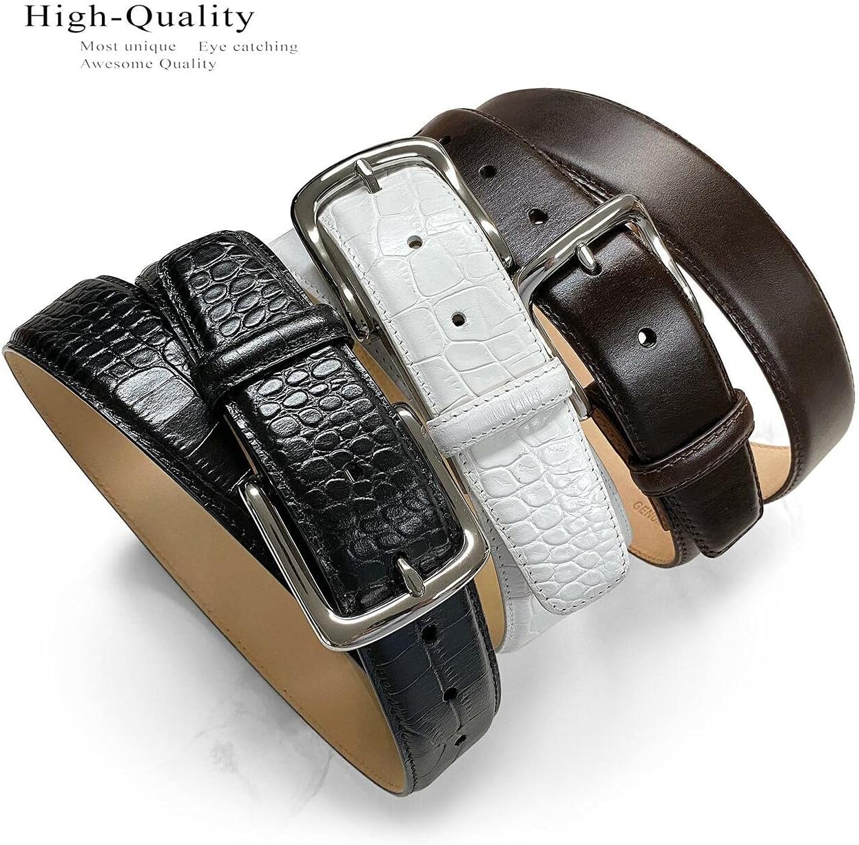 Made from High-quality Genuine Full-Grain Cowhide Leather, Hand-polished silver plated four-piece buckle set, and 5 conchos belt.1-1/8"(30mm) taper down to 1"(25mm) wide belt with 5 belt holes for plenty of room for adjustments to offer maximum comfort.A great designer dress belt perfect for work, business, sport, and outdoor.Detailed of Alligator, Lizard embossing, or smooth leather belt. Designed and assembled in the U.S.Our belts are measured from the fold where the buckle is attached to the middle hole. If you wanted to get the best size we recommend measuring a belt that works for you from the fold to the hole where you wear the belt.