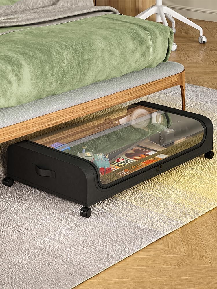 • Convenient and User-Friendly: Equipped with 4 wheels, all with locking functions, and a user-friendly handle, our underbed storage box is easy to pull out and keep in place. It's perfect for storing seasonal bedding, clothing, children's toys and books, and much more.