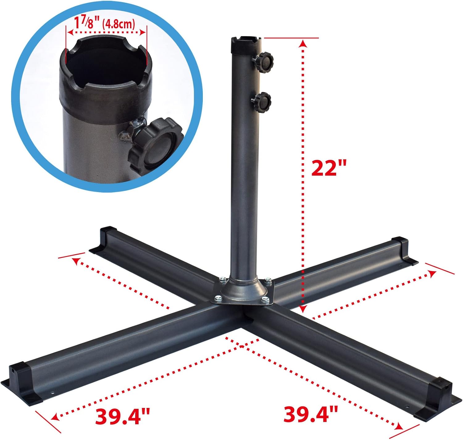 BenefitUSA Umbrella Base is a perfect choice for commercial use or for your busy backyard. The base is made of concrete, durable and weatherproof which can be used in family, hotel, terrace, resort, barbecue bar, western restaurant, outdoor leisure area, company rest area and so on. Nature color and generous design giving your outdoor decor a classic vibe, help you enjoy your patio umbrella! Secure your outdoor umbrella with this heavy duty cross brace. Combine with cantilever umbrella and universal base weights (both sold separately) for a seamless setup.