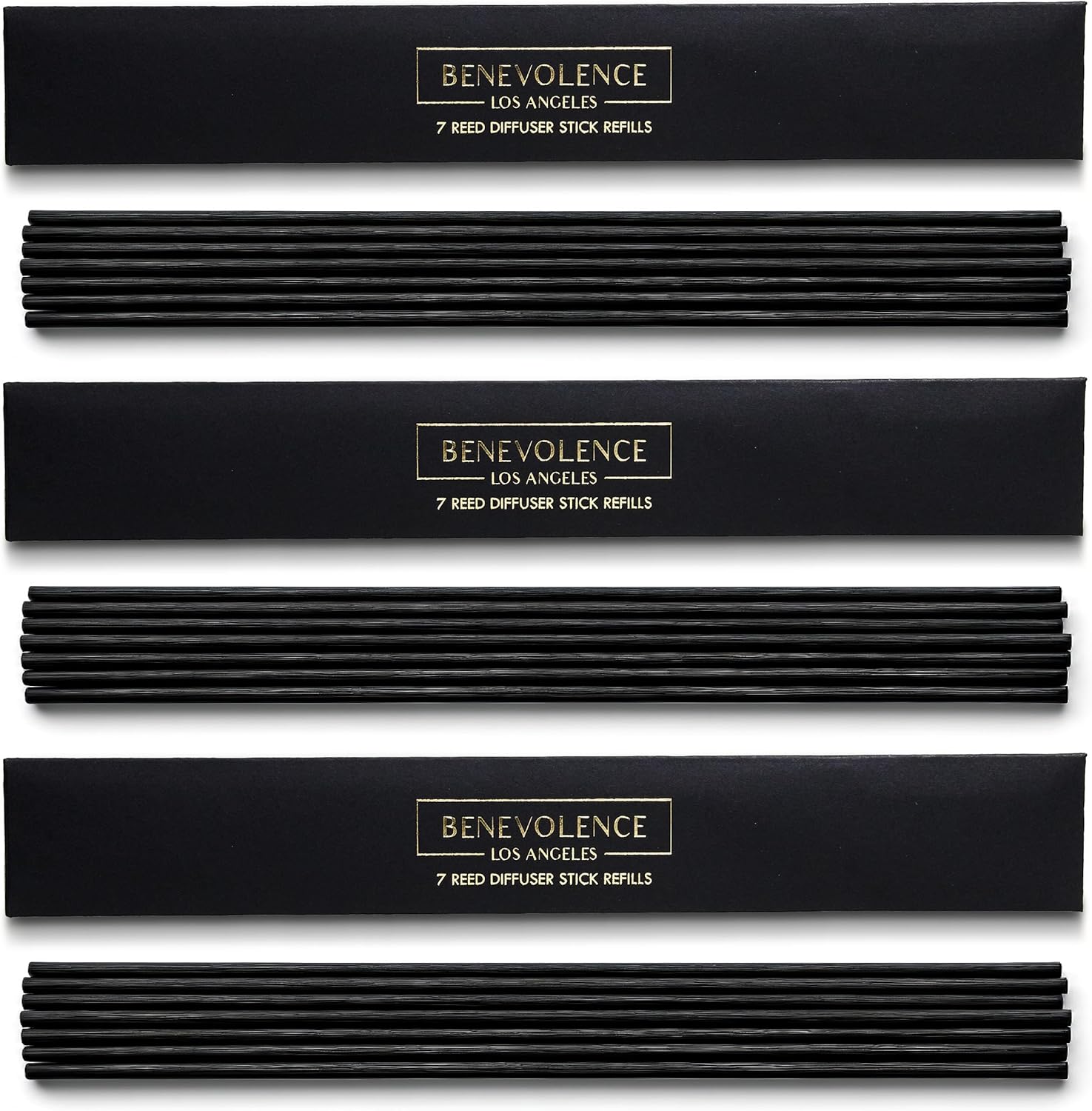 Benevolence LA Rose & Sandalwood Reed Diffuser Set, Oil Refill & 3 Pack of 7 Natural Rattan Sticks with Gift Box | Scented Sticks for Bathroom | Home Décor