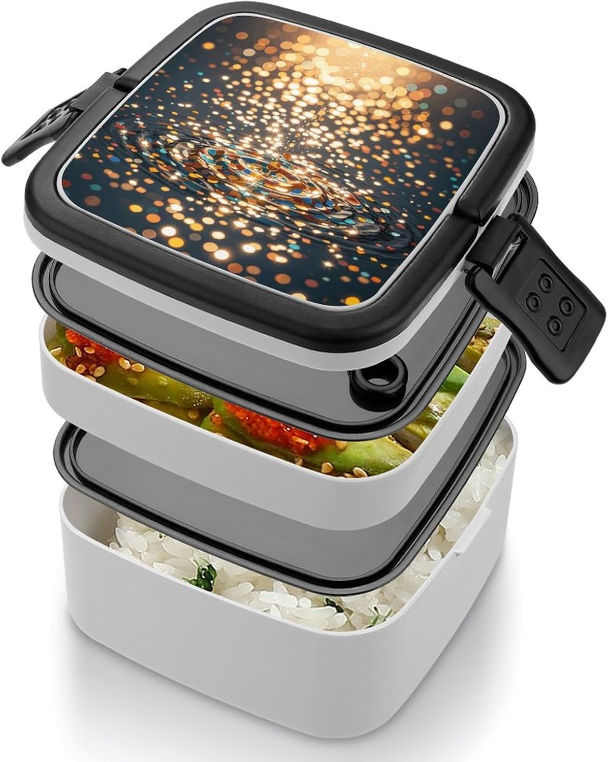 The stackable design of this Gradient Sequin Sparkle printed food container makes it the lunch box headed to the office or on the go! Designed with Double layers, you can easily separate warm and cold foods for mealtime variety