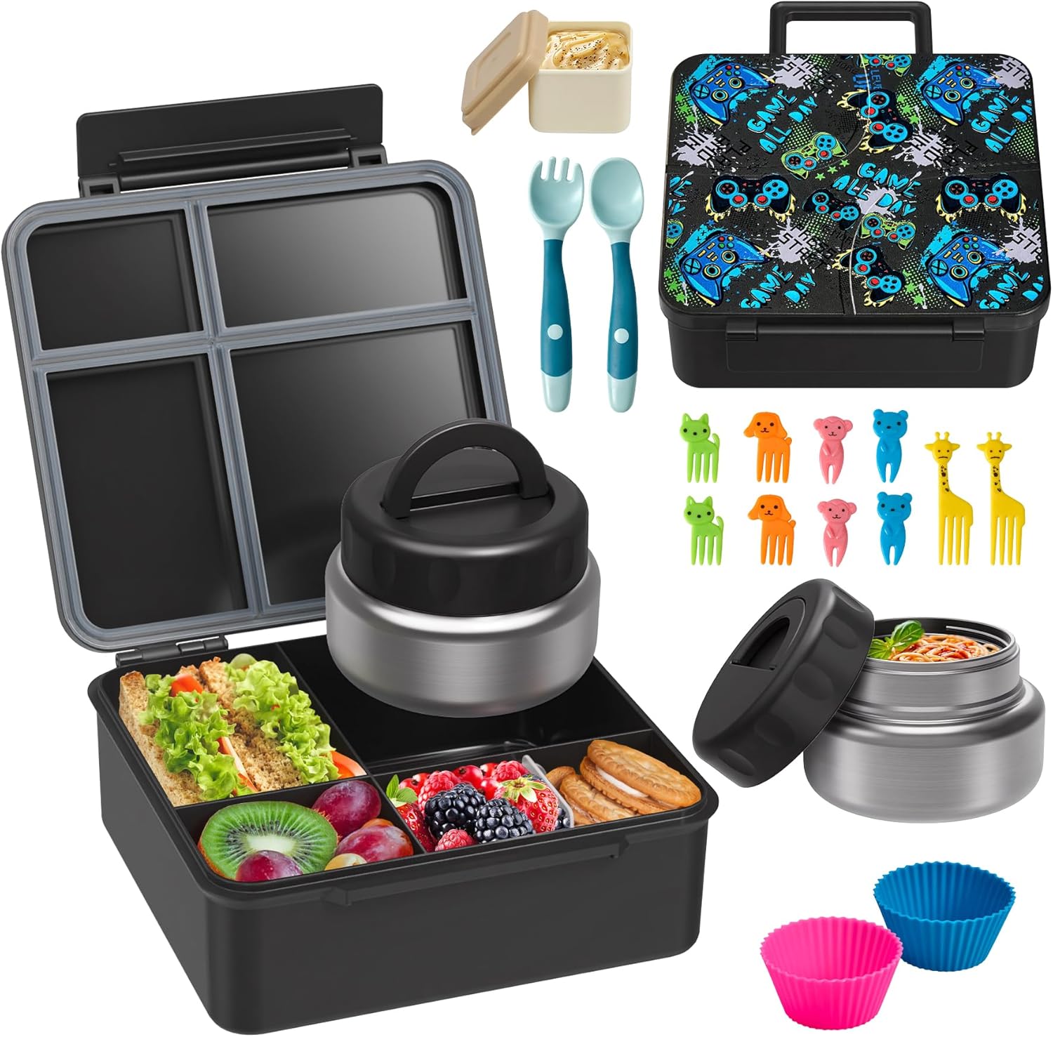 | Included Components | Bento Box, Salad Sauce Container, Folding Spoon Fork, Silicone Cupcake, Fruit Fork, Insulated Soup Thermo, Insulated Food Jar |