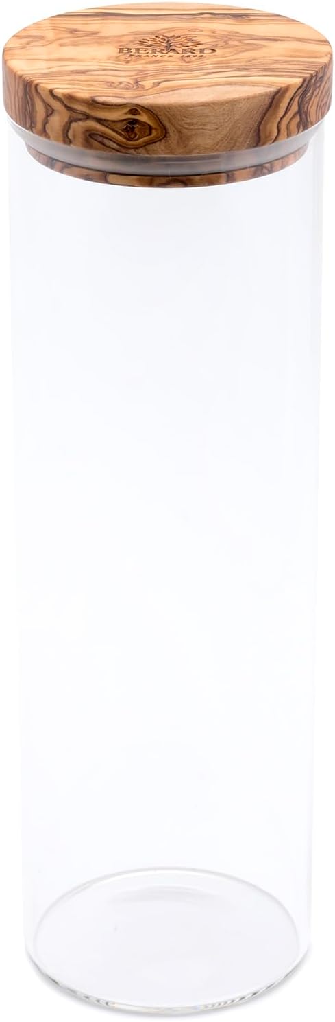Introducing Berard’s new line of glass jars with olive wood lids. Stay organized and keep your kitchen looking neat and beautiful. These jars are elegantly designed to be useful, beautiful and functional. The olive wood lid has a silicone seal that prevents are from getting in or out of the jars to keep you food fresh longer. The natural variations in the wood’s grain and color are unique to each piece so no two jars will be the same. The jars are made of borosilicate glass which is coveted in kitchens worldwide die to its clarity, durability, resistance to thermal shock, scratches and light weight.