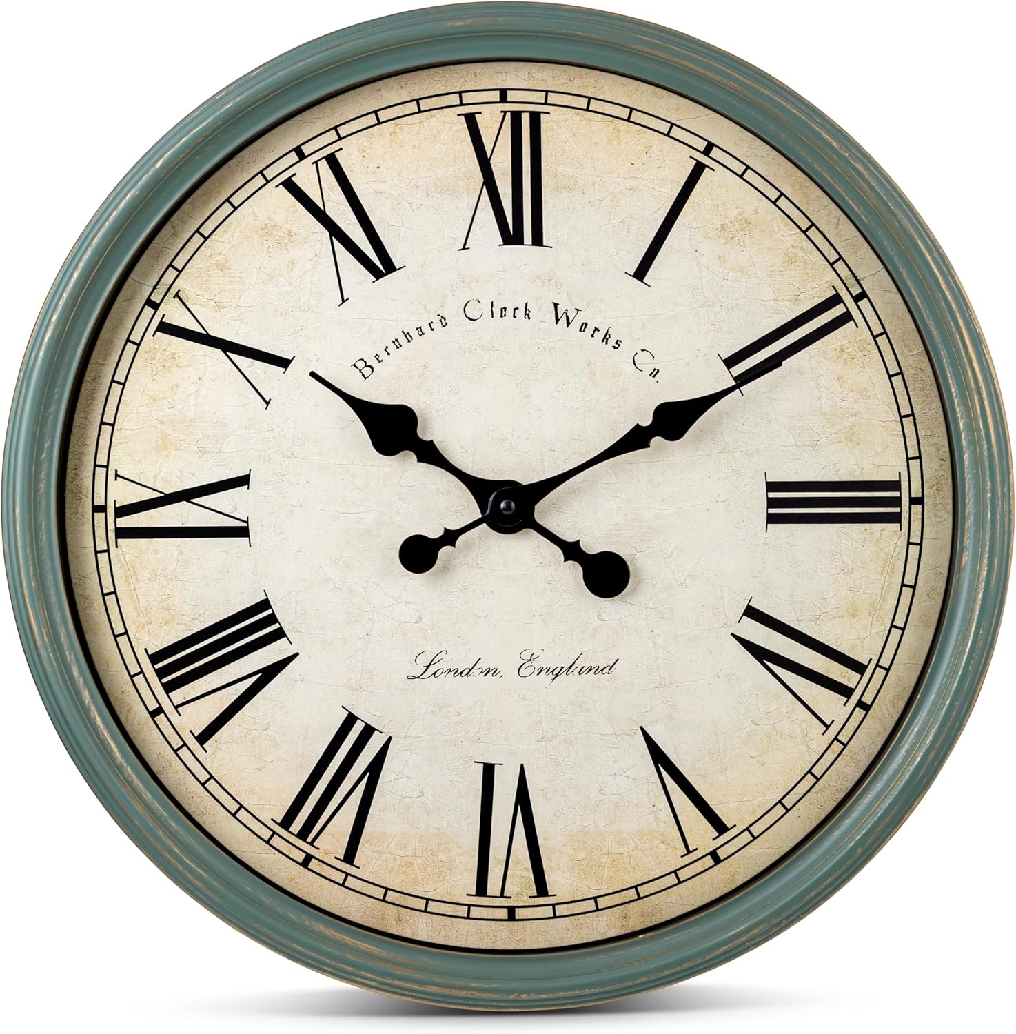 Elevate your space with our Bernhard Products Large Decorative Wall Clock, a 20-inch silent, non-ticking quartz timepiece that seamlessly blends style and functionality. This rustic, vintage-inspired clock features a beige textured face, a distressed dark brown metal frame, and glass case, making it a perfect accent for country farmhouse, vintage, retro, and rustic style decor. The precise quartz movement ensures accurate timekeeping, while the sweeping hand movement creates a smooth, elegant motion. Measuring 10 inches wide and 2 inches deep, this 1.94-pound clock is easy to install and operates on a single AA battery (not included). Ideal for living rooms, dining rooms, kitchens, and above fireplaces, it's backed by a 12-month manufacturer warranty.