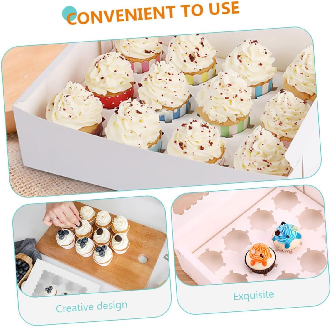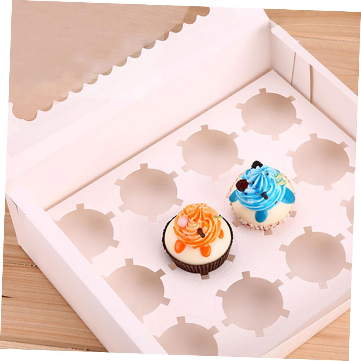 Package List 10 x Baking Packing Boxes Characteristics -Color: White -Material: Paper -Size: 32.50X25.00X9.00cm/12.77X9.82X3.54in -Product Info:Cupcake packaging box -Transparent window design can show off your egg tarts inside without exposing to the air small bakery boxes. - and fashion box look design can make your egg tarts look more delicious and delicate muffin containers. -Simple and practical design, and easy to use and carry, it is suitable for baking party, cake shop, dessert shop, catering take-out cupcake carrier. -Multi-function design, it can be used as a packaging box for egg tart, cupcake, mousse, and other desserts cupcake case. -There are enough quantity of packaging boxes that can meet your different needs cupcake holders.Goods Descriptioncupcake container Suitable for birthday party, small banquet, hotel, cafe shop and more.paper bakery carrier They can be used to pack egg tarts and muffin cake and such desserts, very delicate and practical.cupcake carton This cake packaging box is made of premium and safe paper materials, you can use them with confidence