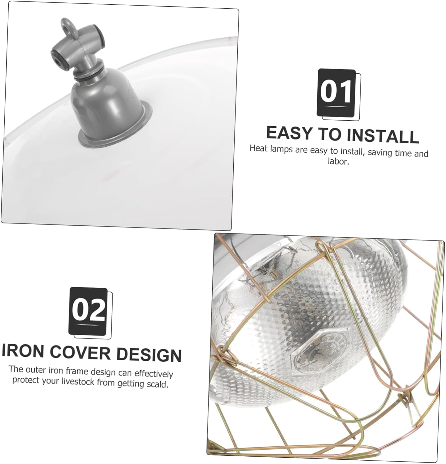 Package List 1 x Poultry Heat Lamp Features -Material:Metal,Plastic,Glass fixture -Power:150W ir -Color:As Shown poultry thermostat lamp -Size:29.00X29.00X18.00cm/11.40X11.40X7 base flood light. - Using iron and glass material for safe use. A great your friends or family who are raising pet reptiles lights. - craftsmanship and fine details, which makes this heat preservation lamp is a great product vapor. - Good heating effect, more conducive to keeping animals warm. Safe and convenient to use chicken heating lamps. - Suitable for elderly pets, arthritic pets, pregnant pets, newborn pets or animals recovering from illness or injury lizard. - The outer iron frame design can protect your livestock from getting scald pet heat lamp.Goods Descriptionpoultry heating lamp The heat lamp is practical, and has good heating function and provides good preservation effect, which can keep the livestock or pets warm.pet breeding heat light Are you looking for a heat lamp for your pet to use in winter or for the breeding process? This heat lamp is manufactured with iron and glass material, safe and comfortable for pet to use