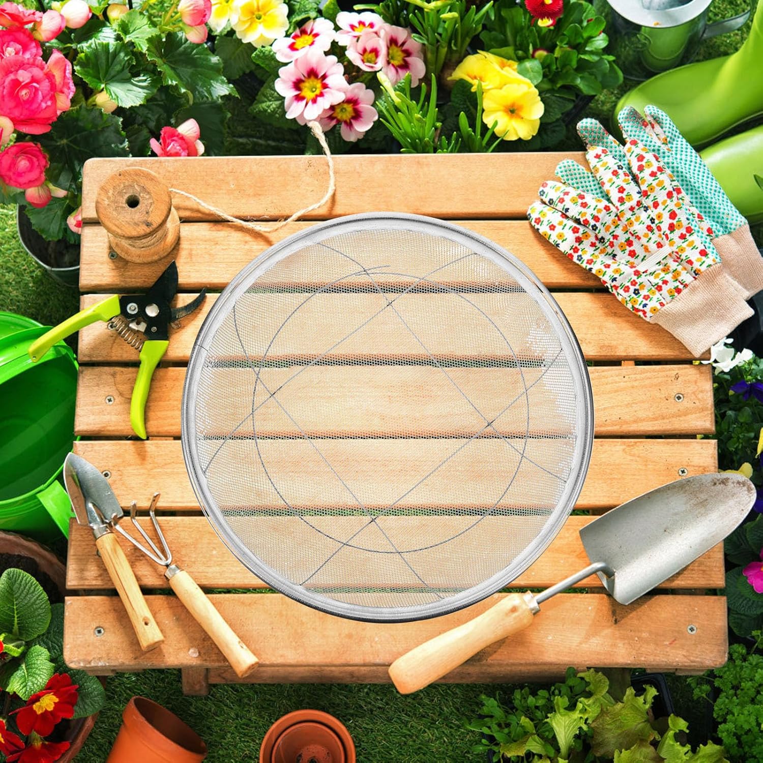 DescriptionThis product is a set of gardening soil sieve, which are made of stainless steel materials, more durable, easy to clean. It is a necessary tool for yard and gardening. Fine hole design, screening is more secure, and cultivation media can be screened.Features-Color:Silver-Material:Stainless steel-Size:42.00X42.00X4.00cm16.51X16.51X1.57in-Hole diameter:2mmPackage Including1 x Soil Sifter