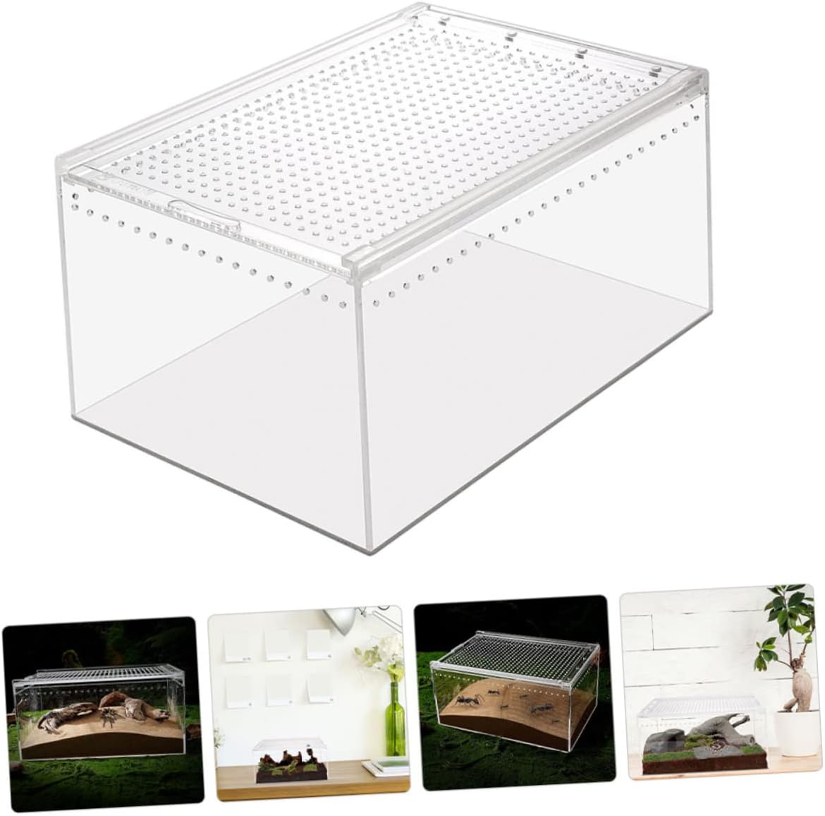 Package Include 1 x Box Characteristics -Size:25.00X15.00X15.00cm/9.82X5.89X5 snail incubator. -Material:Acrylic creative feed bin -Color:As Shown reptiles feed bin -The ventilation holes keep fresh air flow into the habitat, which are good for your lovely pet growth enclosure for tarantula. -Suitable for raising spiders, house lizard, small turtles, frogs, corn snakes and other small animals spider incubator. -Lightweight and compact, this breeding box is easy to operate, extremely convenient for feeding box for tarantula. -Good and materials, which are and can be used for a long period feed bin for tarantula. -This breeding box's high visible design can help observe the trend of pets playing at any time creative enclosure.Goods Informationsnail feed bin The breeding box allows for the easy feeding of reptiles without harming small pets.reptile enclosure Made of good material, and . feed bin Suitable for snakes, tarantulas, , geckos, crickets, snails, hermit crabs, frogs, lizards, tortoise and other reptile animals
